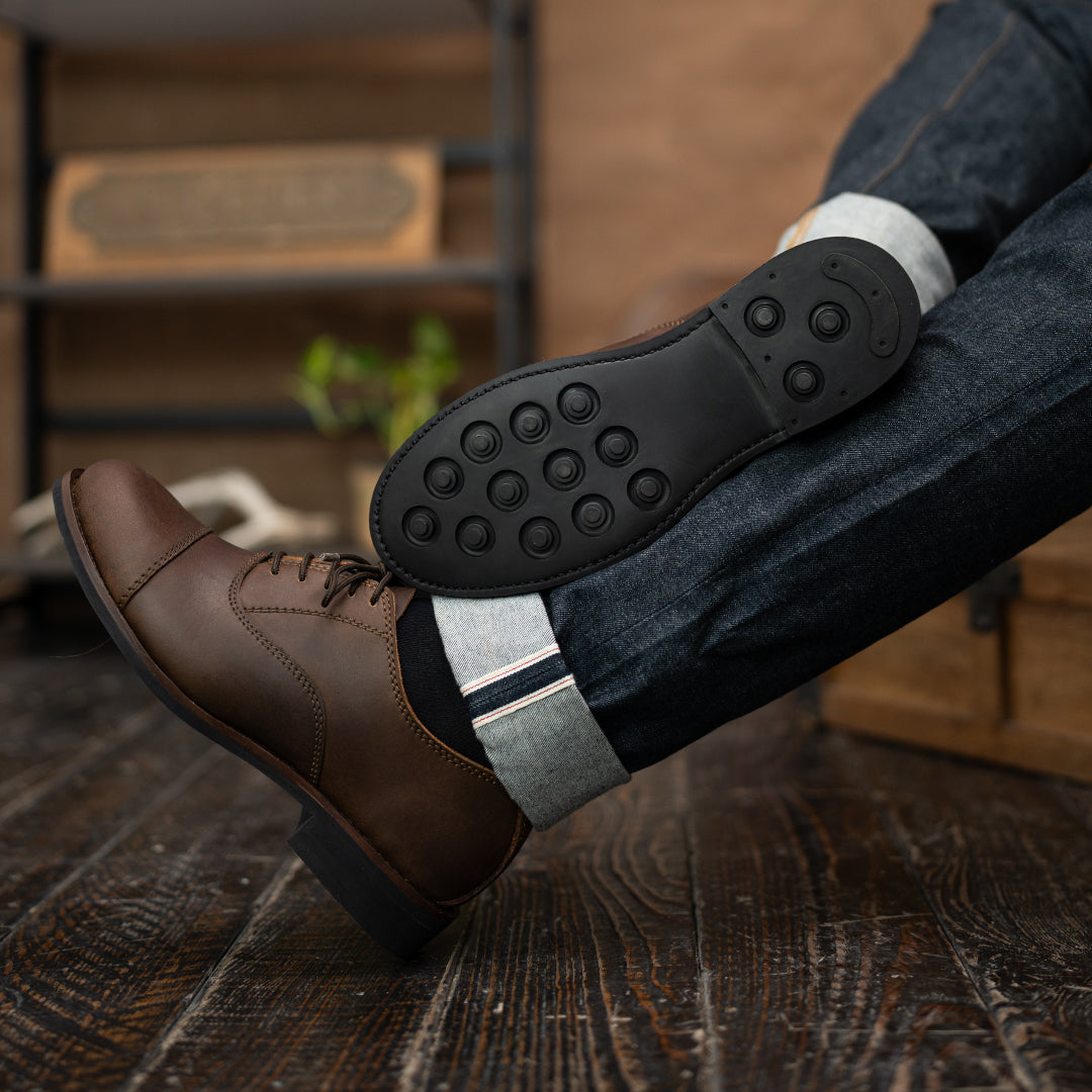 Tracing their roots back to the refined yet resilient footwear worn by distinguished gentlemen since the mid-18th century, our Duty Shoes are a tribute to timeless style. Originally designed for those who navigated both formal settings and rugged terrains, this iconic silhouette has remained a symbol of sophistication and strength for generations.