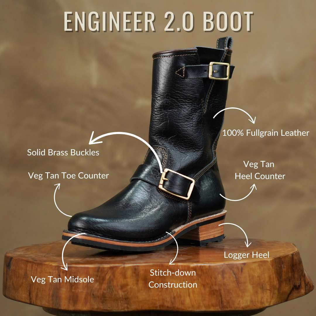 Featuring a logger heel, veg-tan midsole, and a secure gusseted tongue, the Engineer 2.0 is built for maximum functionality and comfort. Its meticulous hand-stitching and hand lasting ensure exceptional durability and a flawless finish. Whether riding, working, or exploring, the Engineer 2.0 is your dependable partner for every adventure.