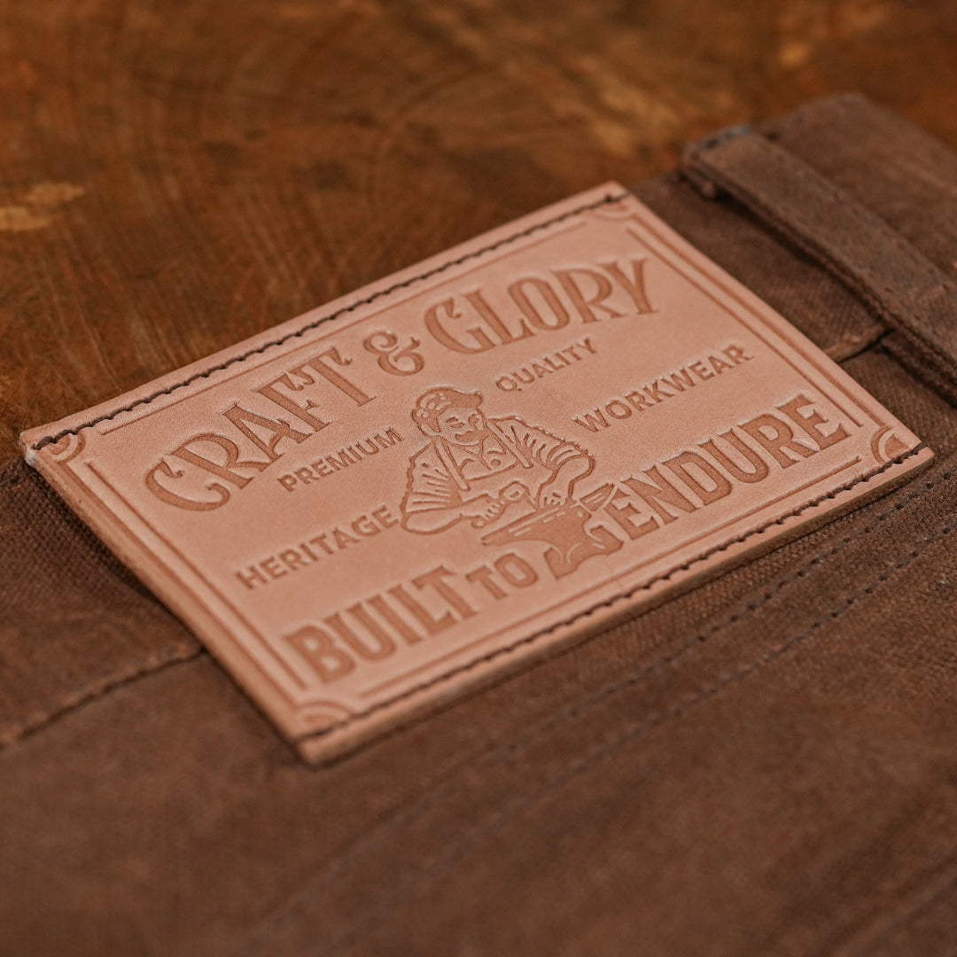 Five Pocket Bear Brown 12 Oz Hard Waxed Canvas Pants For Men (True Straight)