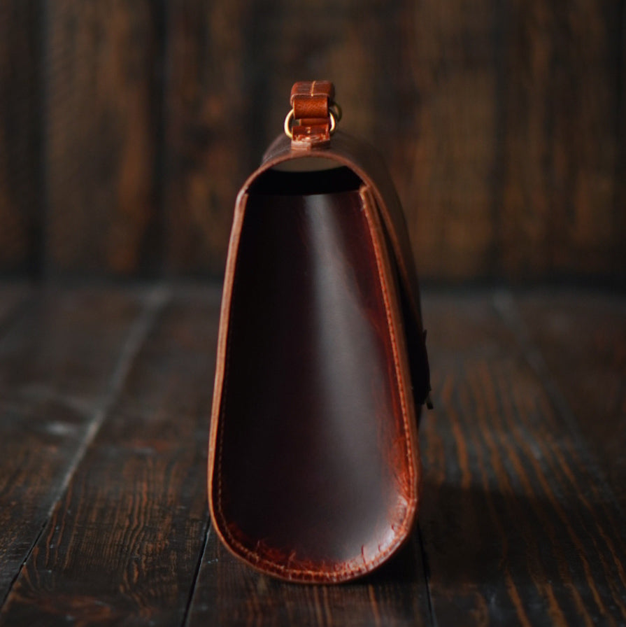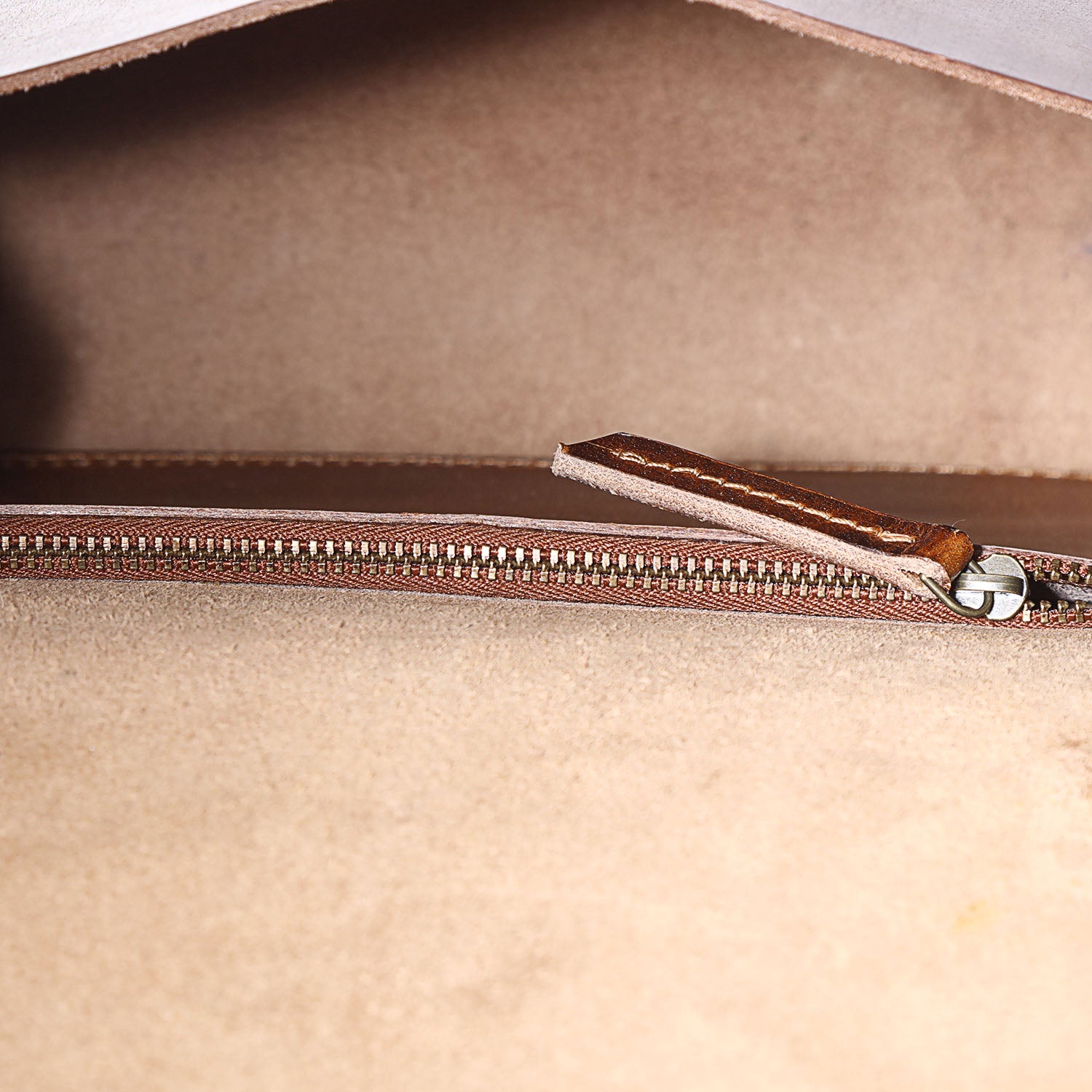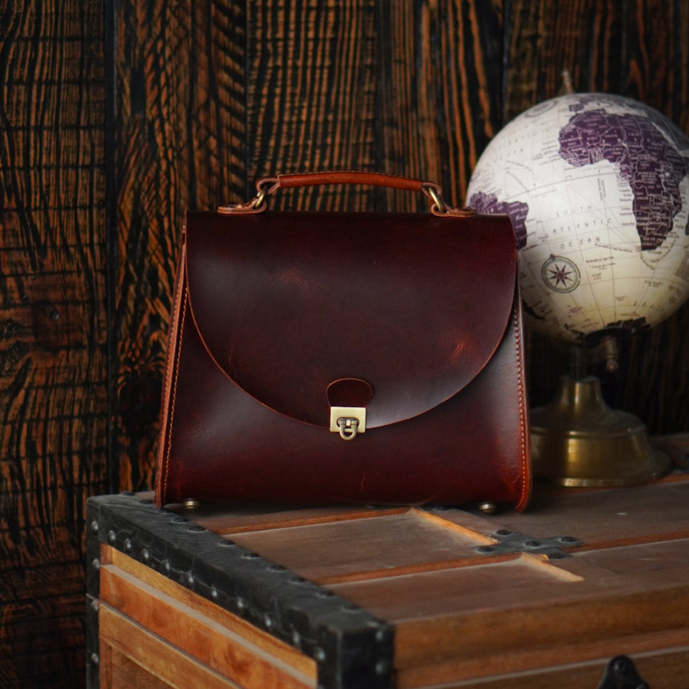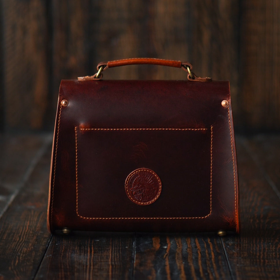 Ein wunderschönes, minimalistisches Design, eine robuste Verarbeitung und hochwertiges, dickes, vollnarbiges, gewachstes Büffelleder machen es zu einem Muss für jede Vintage- und Rustikalliebhaberin.