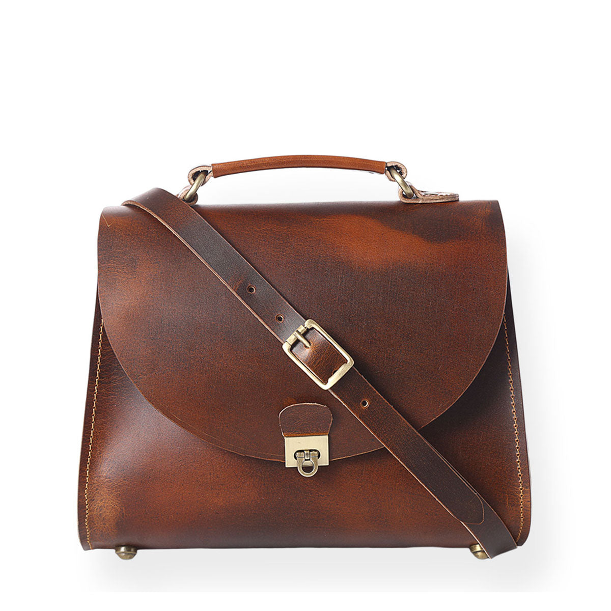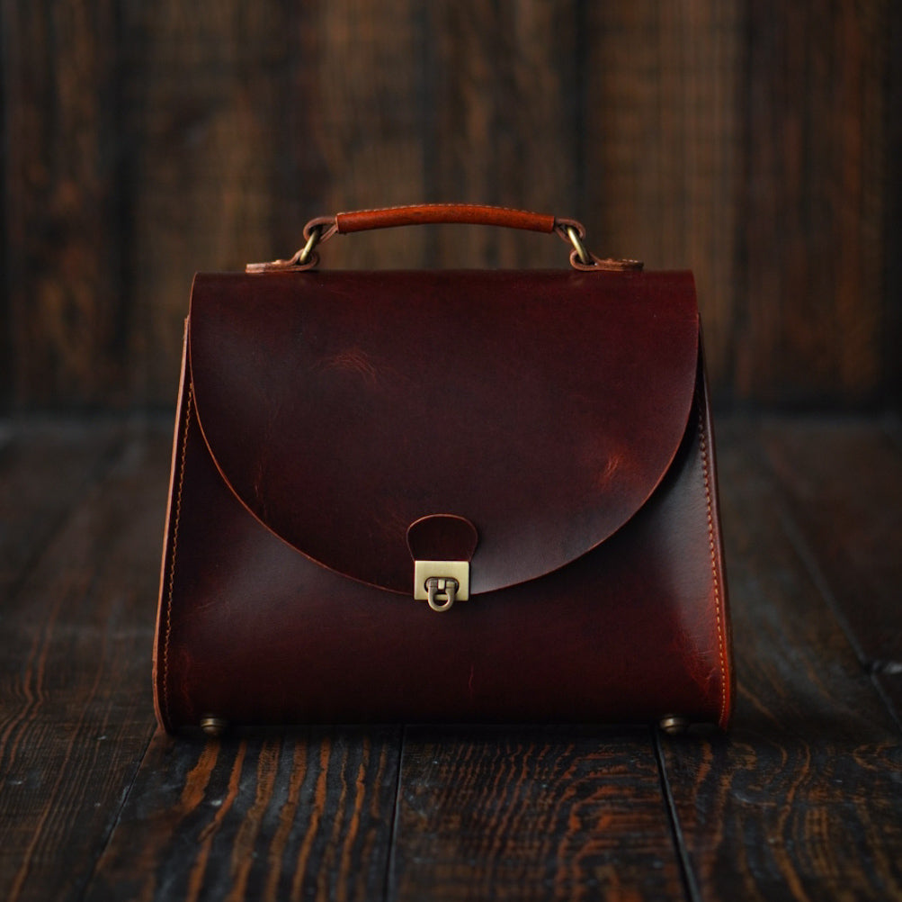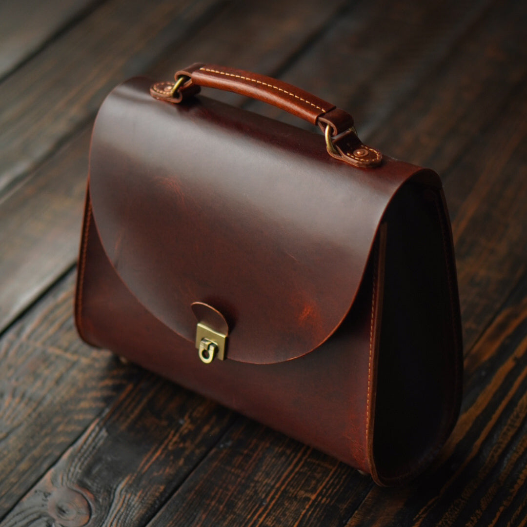 Ein wunderschönes, minimalistisches Design, eine robuste Verarbeitung und hochwertiges, dickes, vollnarbiges, gewachstes Büffelleder machen es zu einem Muss für jede Vintage- und Rustikalliebhaberin.