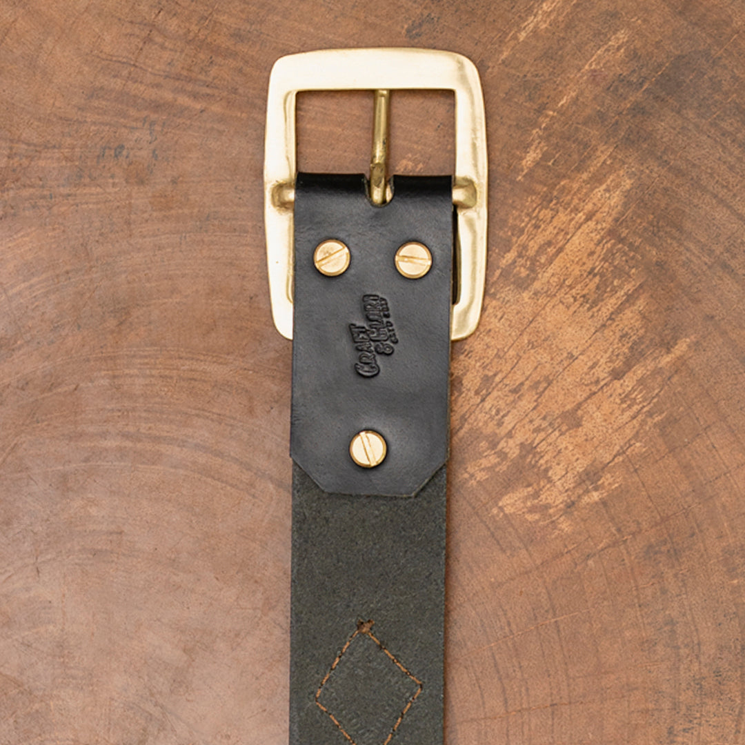 The belt is solid full-grain leather. No lining, no synthetic filler. It’s just leather and metal. If you oil it once every 6 months, it’ll last forever.