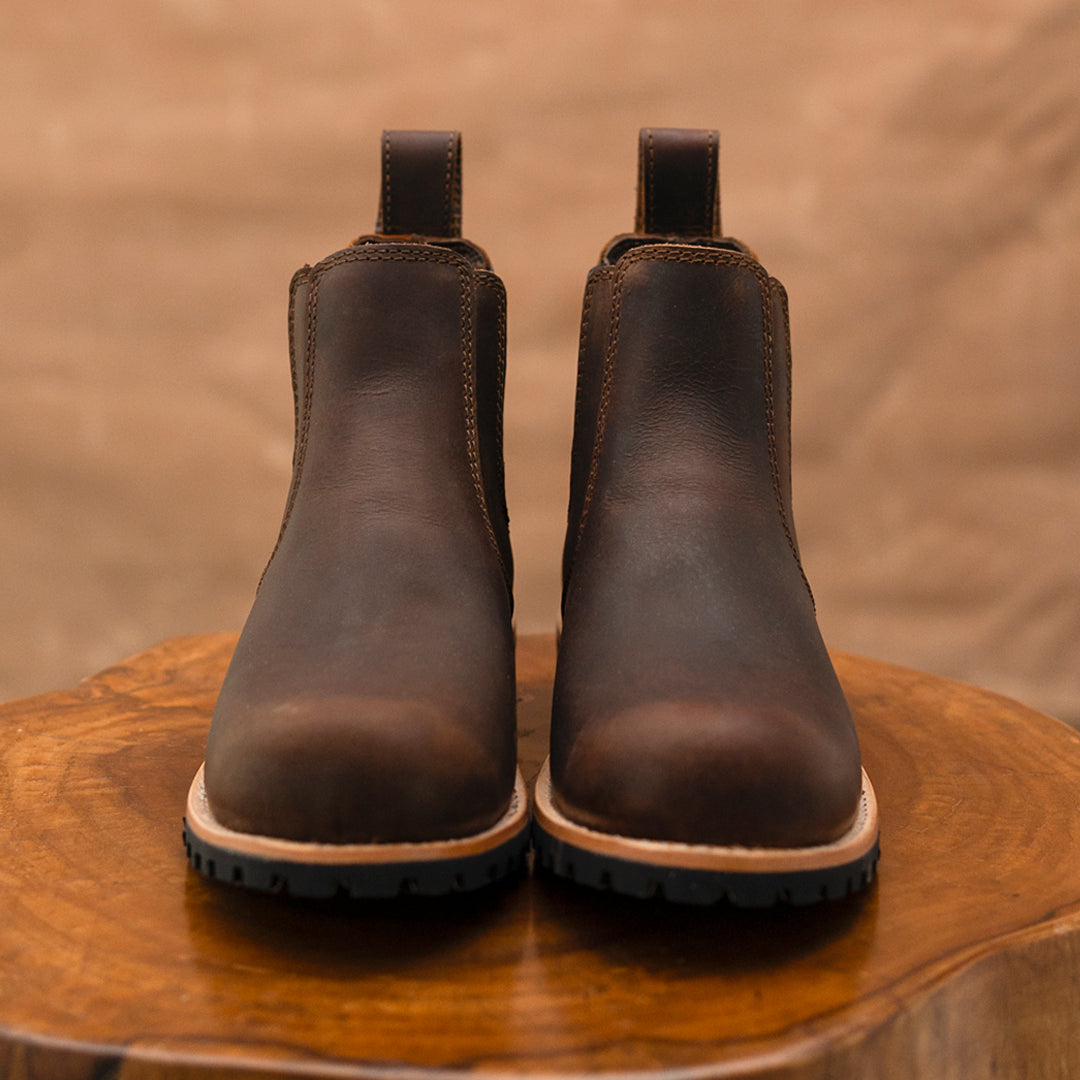 Our timeless boot will last you for years to come. Featuring handcrafted full-grain thick buffalo leather, elastics on the sides making them easy to put on and take off, and hand-stitched Goodyear welting. A boot sturdy enough to beat any terrain.