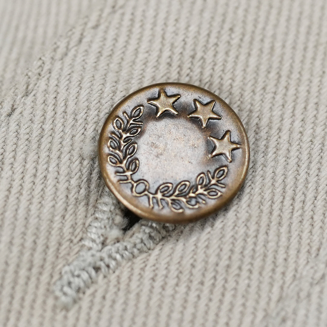 - Hardware: 100% Solid Anti-Rust Brass Buttons and Original Copper Rivets