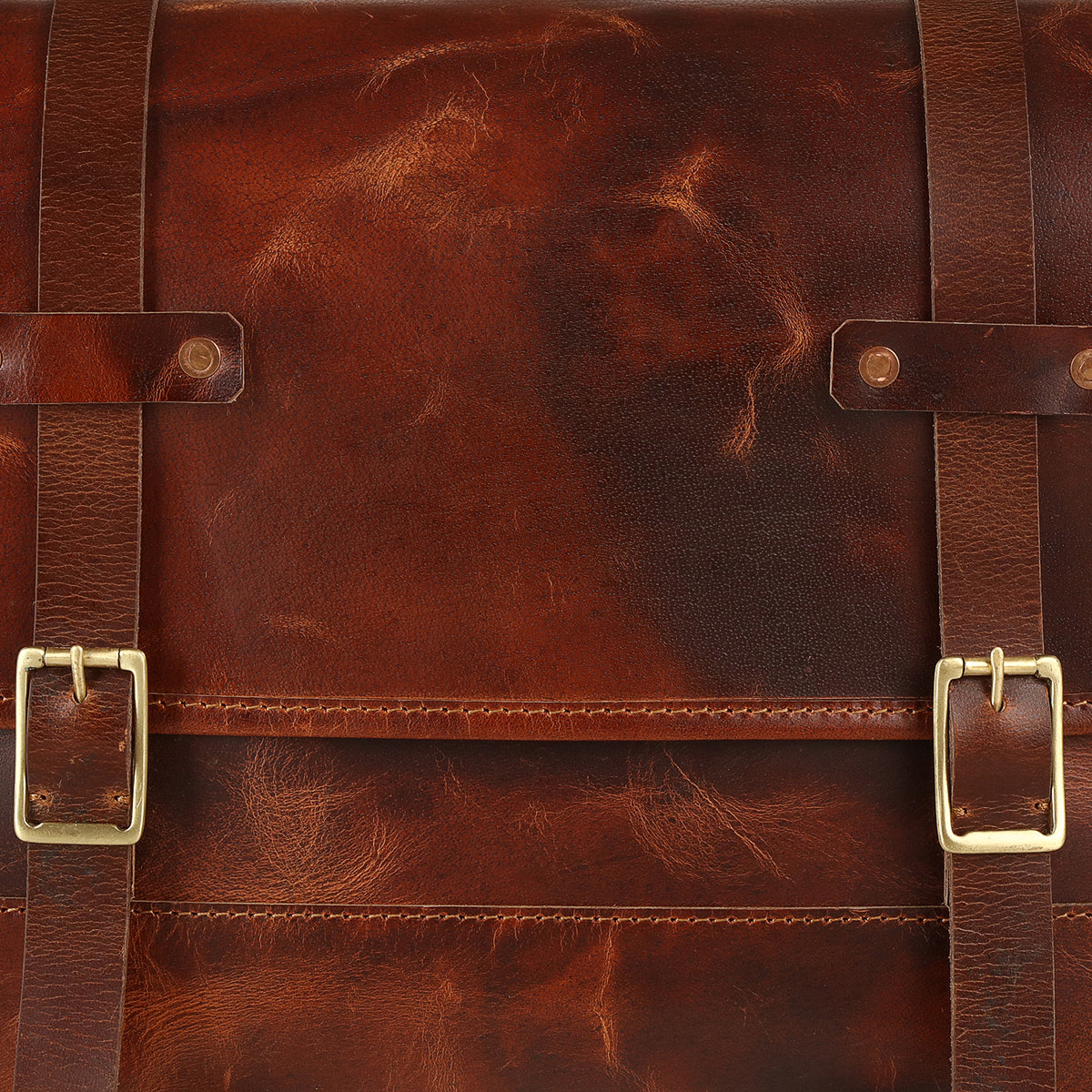 - Straps made of 10 0z (4mm) thick full grain waxed buffalo leather sourced from LWG gold certified tannery.
