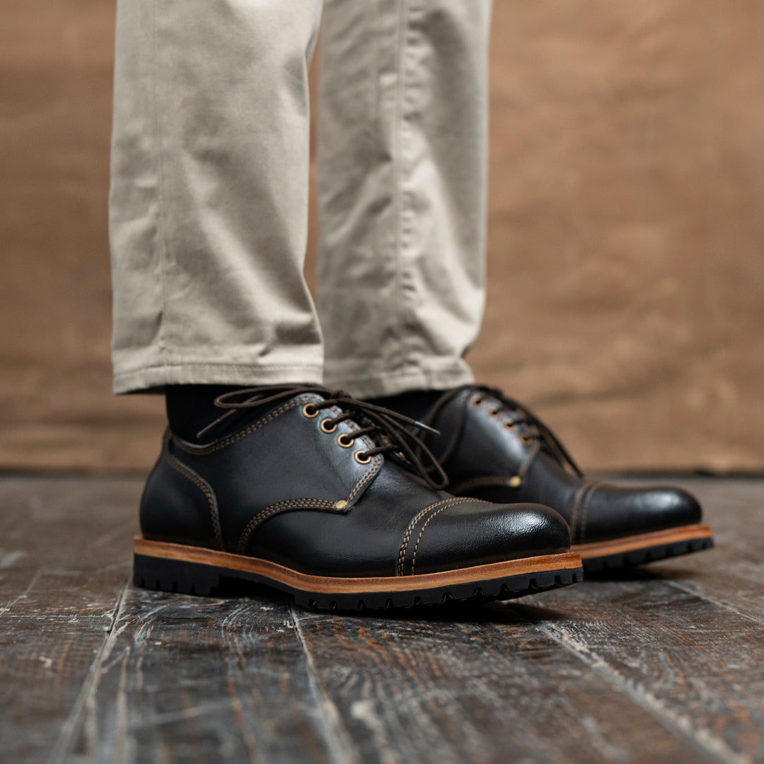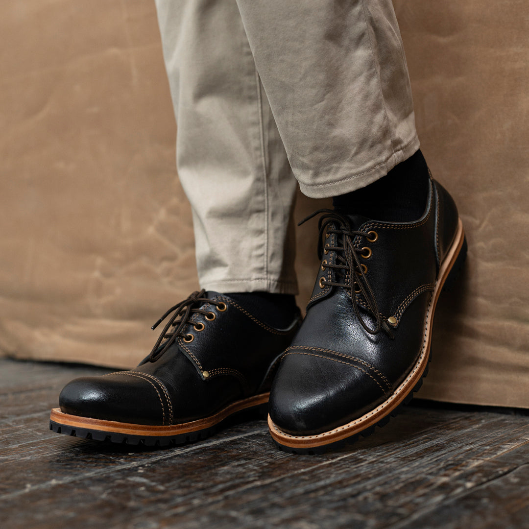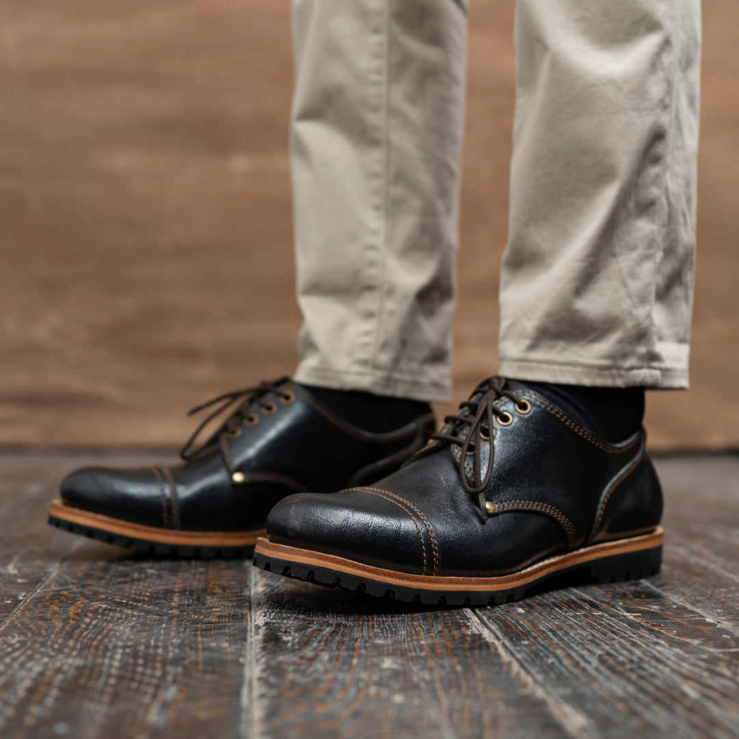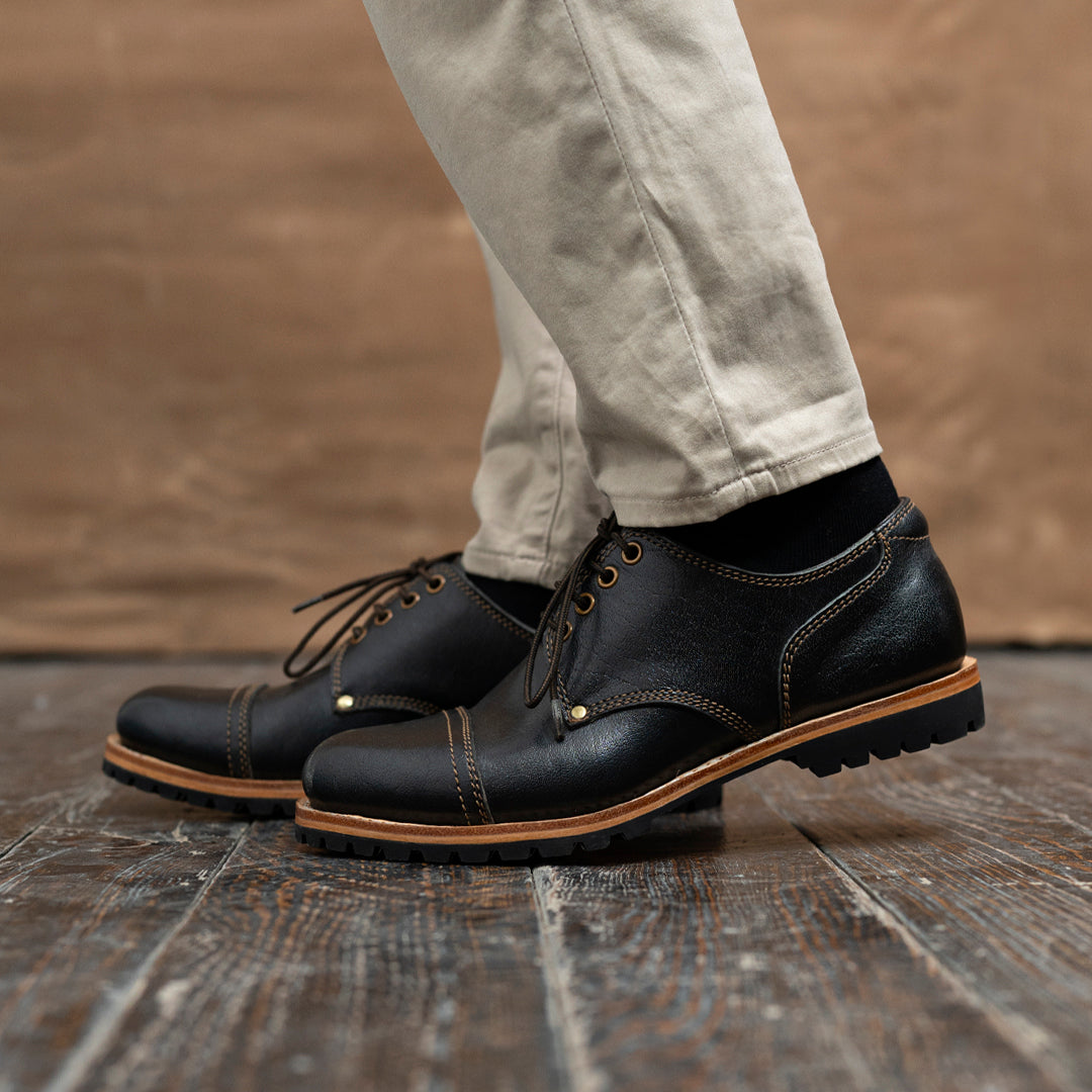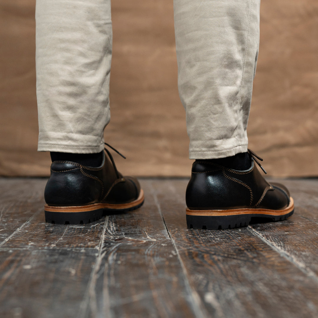 Constructed using the traditional and robust Goodyear Welt Construction, the Marshal Shoe offers exceptional durability and long-lasting comfort. Made from 100% full-grain buffalo leather, it features a classic toe-cap design that adds a refined touch to its rugged nature.