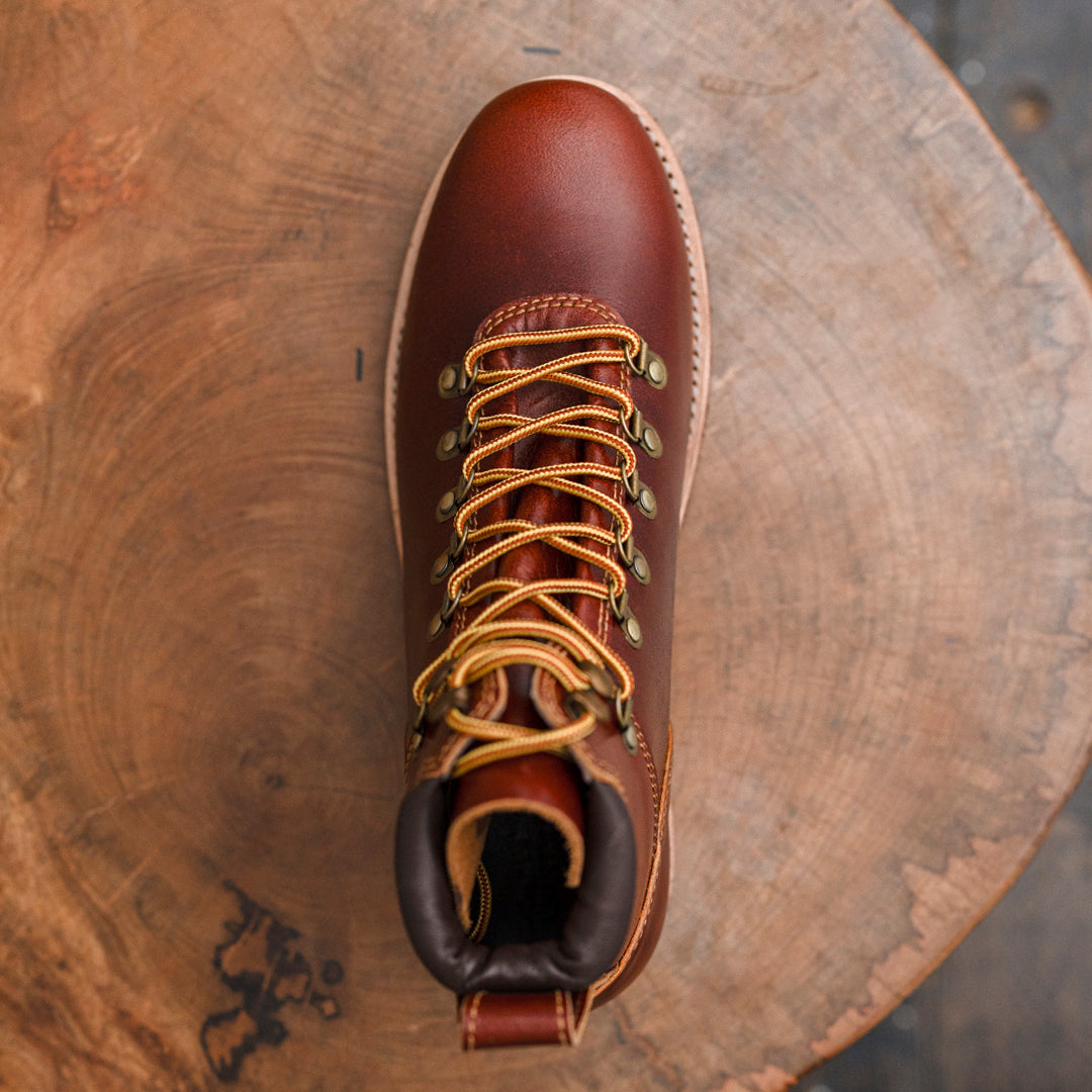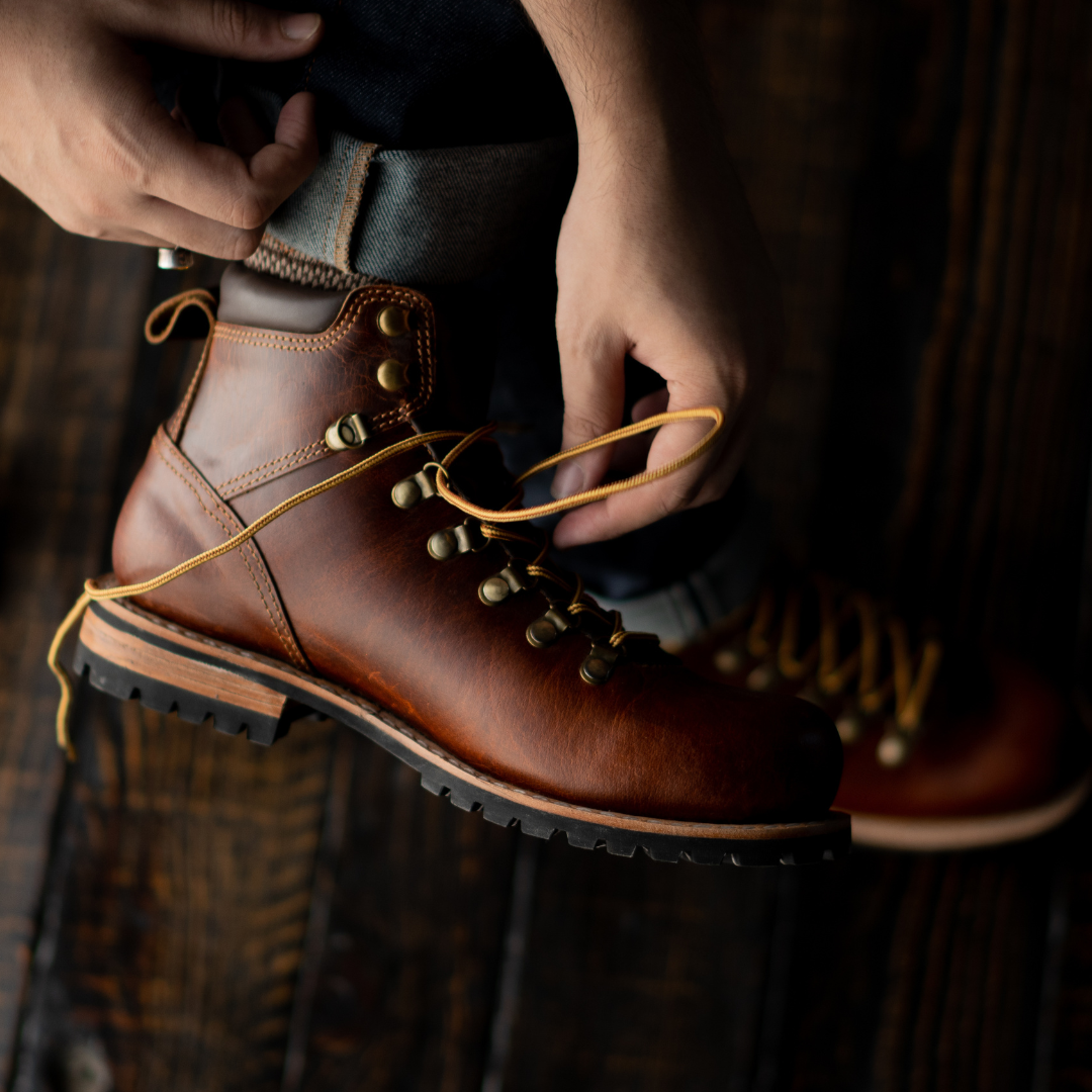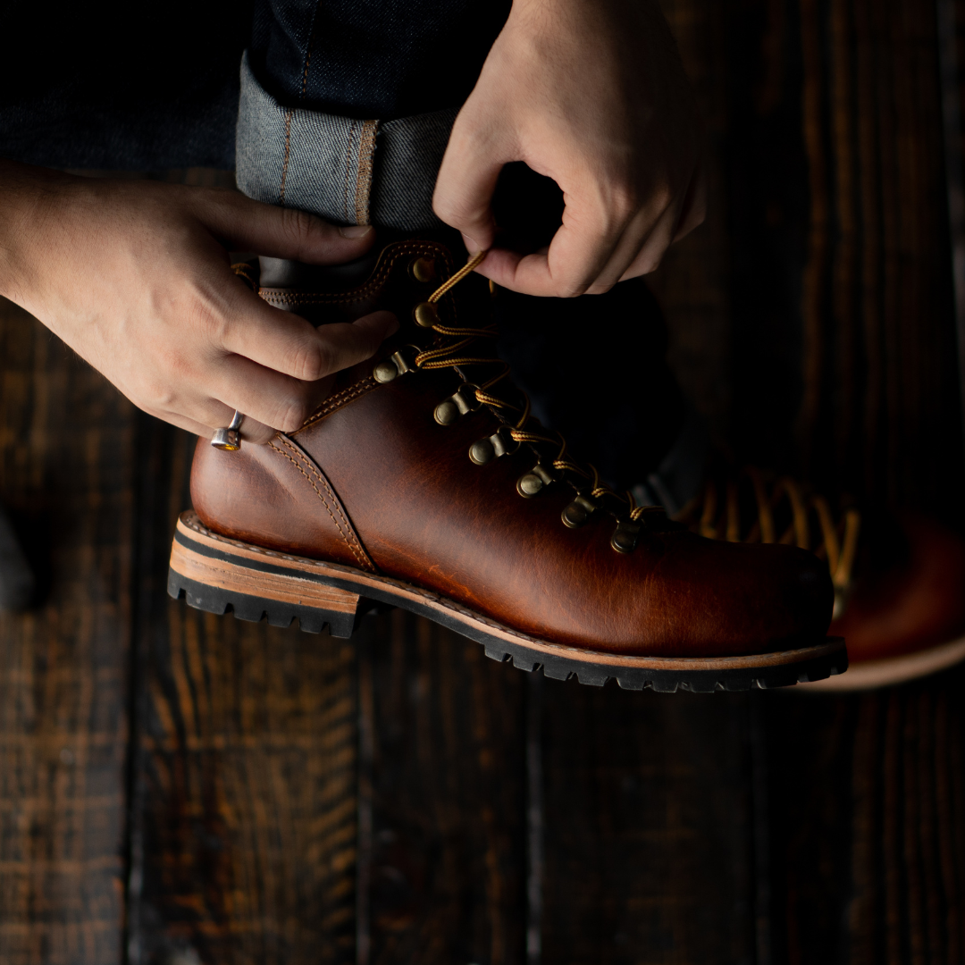 Toe box and heel counters are crafted out of thick vegetable tanned leather and dipped in industrial hardeners to keep your boot structured and durable for a lifetime.