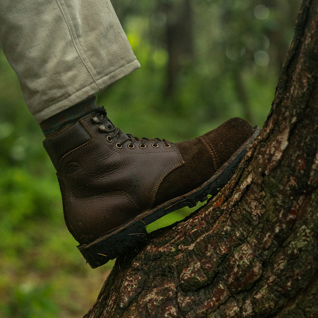 Padded where it counts and grounded with nitrile lug soles, it’s engineered for harsh terrain and day-long use. Expect character from day one, and performance for years after.