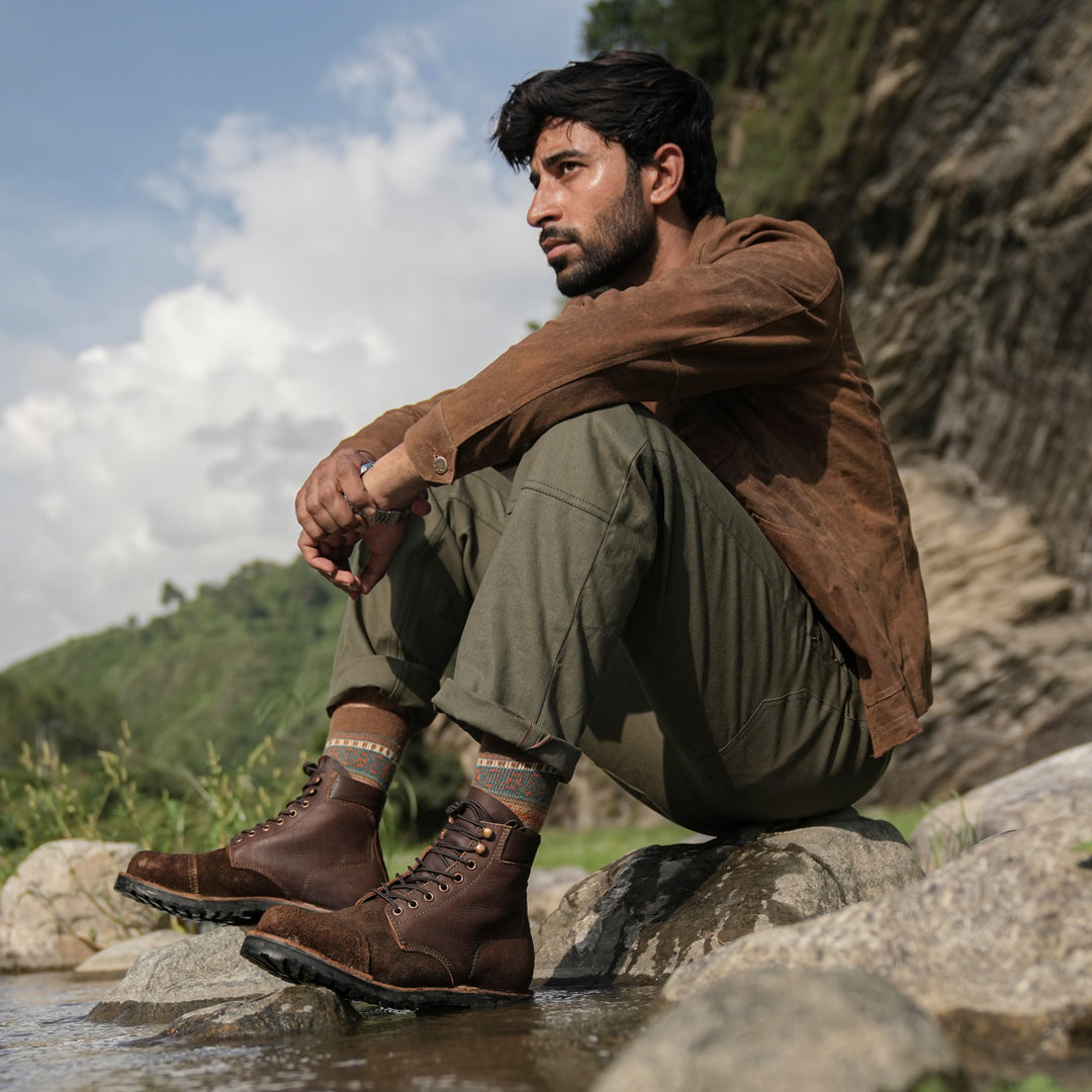 These super sturdy natural rubber soles have deep lugs, high traction, high flexibility and are water resistant, making them suitable for kinds of weather and terrains. Be it a hike or a casual day out with the boys these soles are ready for all your adventures.