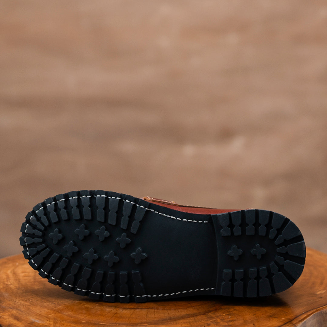 These offer rugged elegance for every occasion, the perfect blend of rugged appeal and timeless elegance. Inspired by the shoes worn in Norway in the 19th century among the fishermen called "tesers". Crafted using Goodyear welt construction, these loafers stand out with their sturdy, hand-welded design.