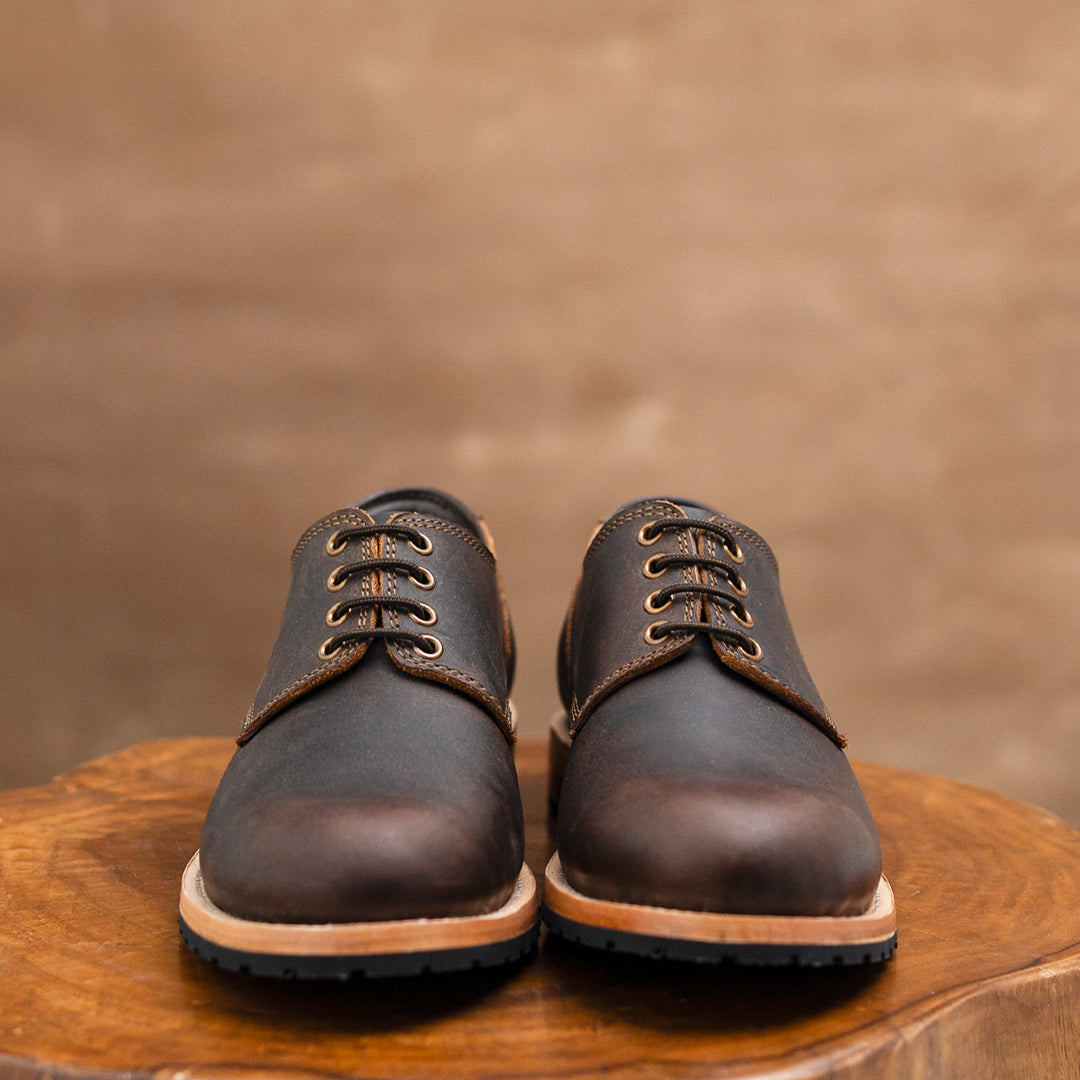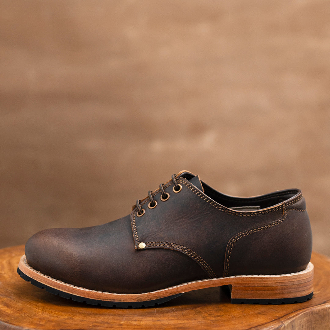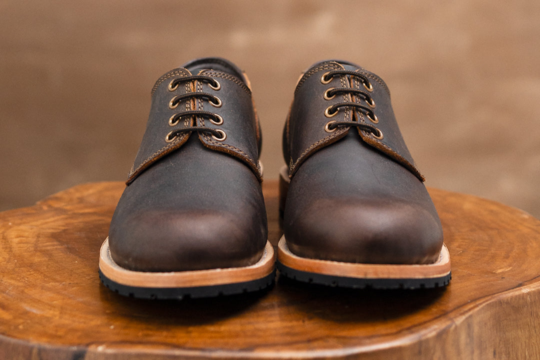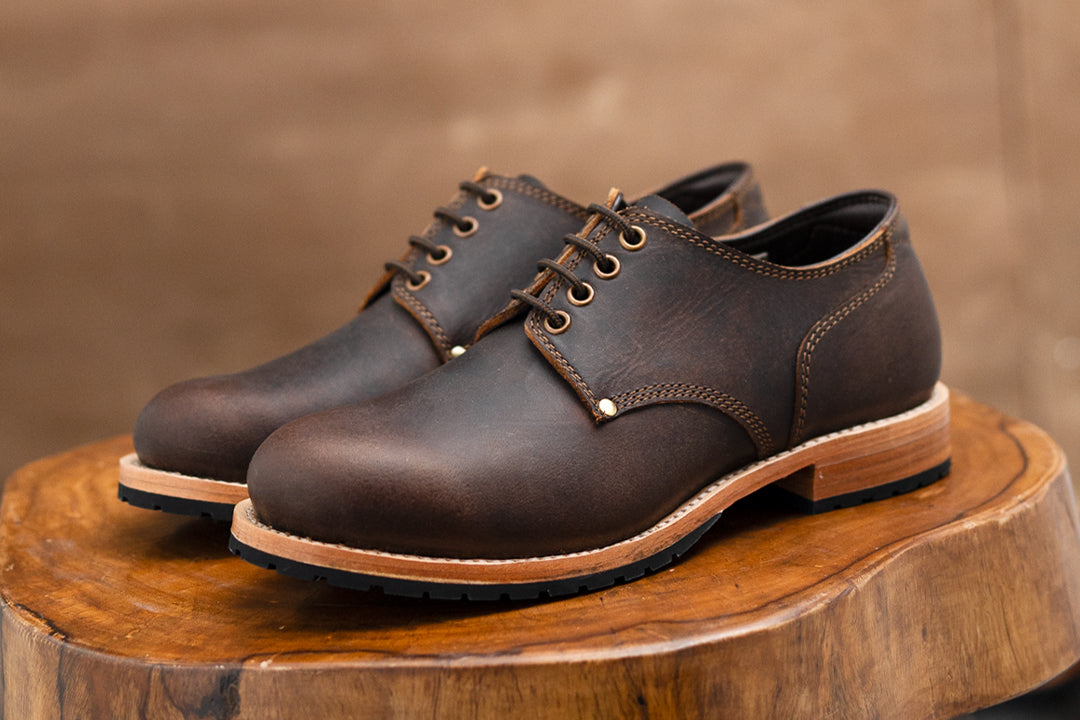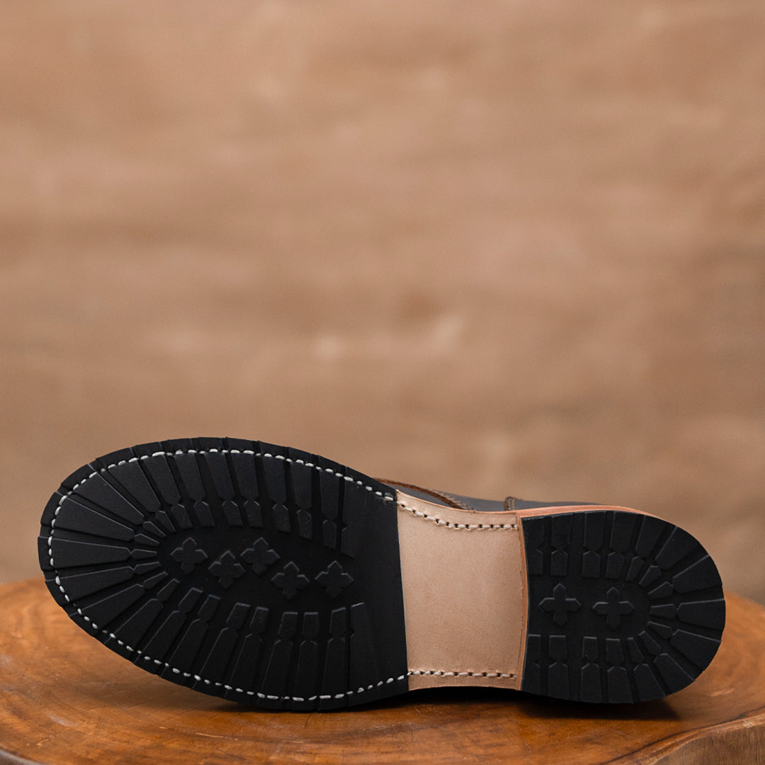 Crafted from premium full-grain leather, our Service Shoes offer a rich texture that ages beautifully over time. The Goodyear welt construction ensures durability and the ability to be resoled, making them a lifelong companion. We've reinforced both sides of the shoe with rivets, adding strength to high-stress areas while maintaining a sleek profile and historical accuracy.