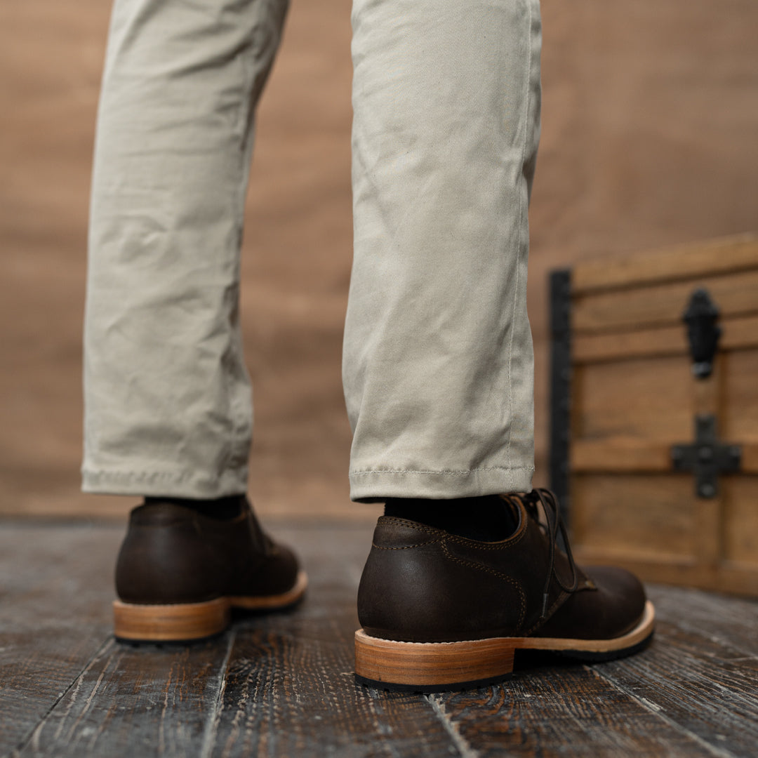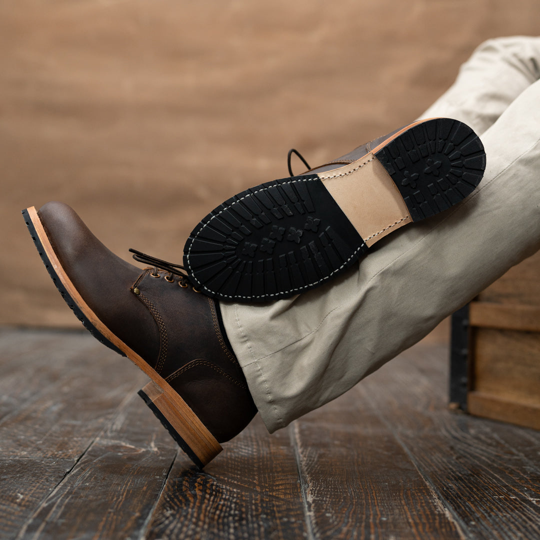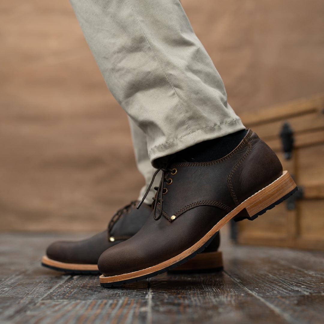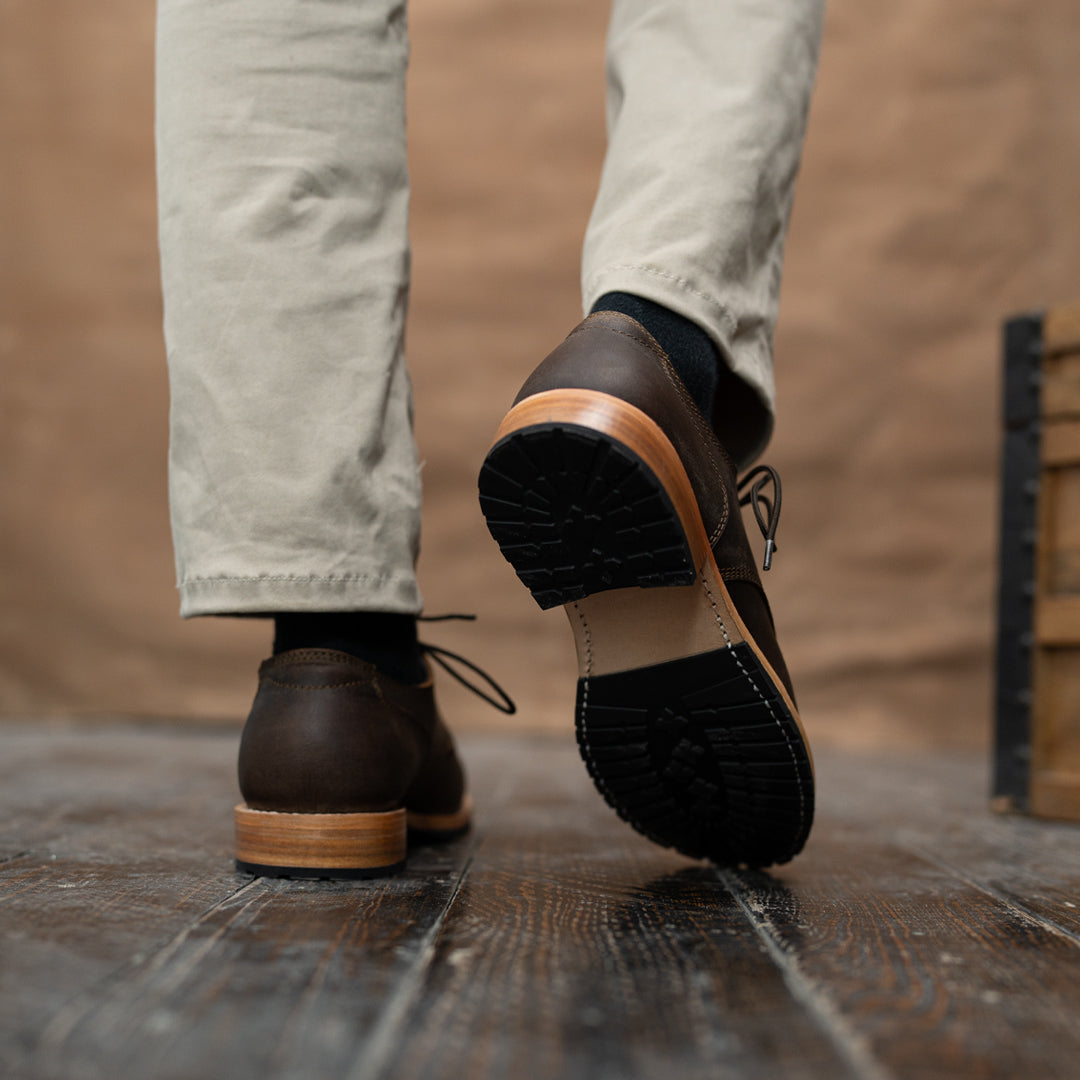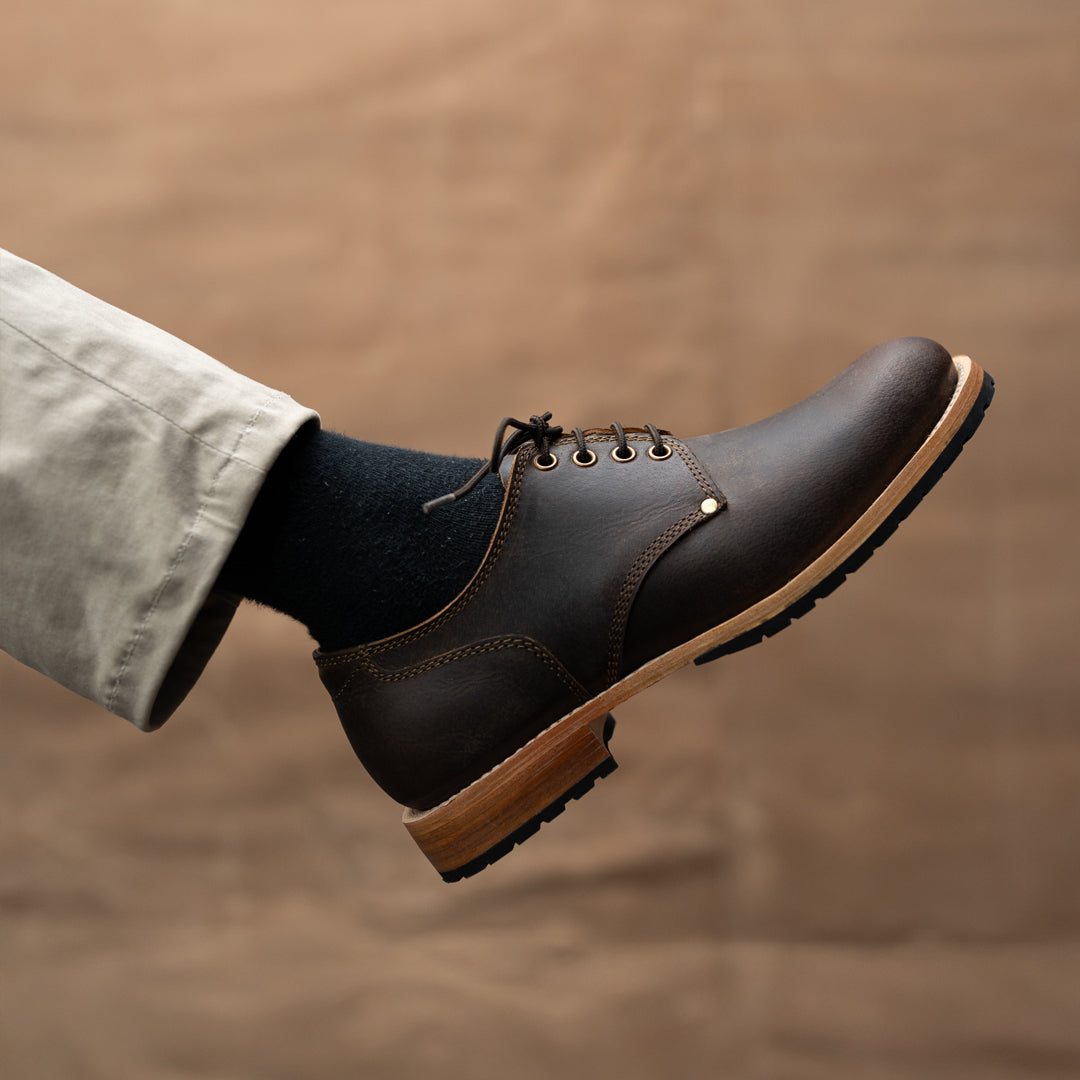 Crafted from premium full-grain leather, our Service Shoes offer a rich texture that ages beautifully over time. The Goodyear welt construction ensures durability and the ability to be resoled, making them a lifelong companion. We've reinforced both sides of the shoe with rivets, adding strength to high-stress areas while maintaining a sleek profile and historical accuracy.