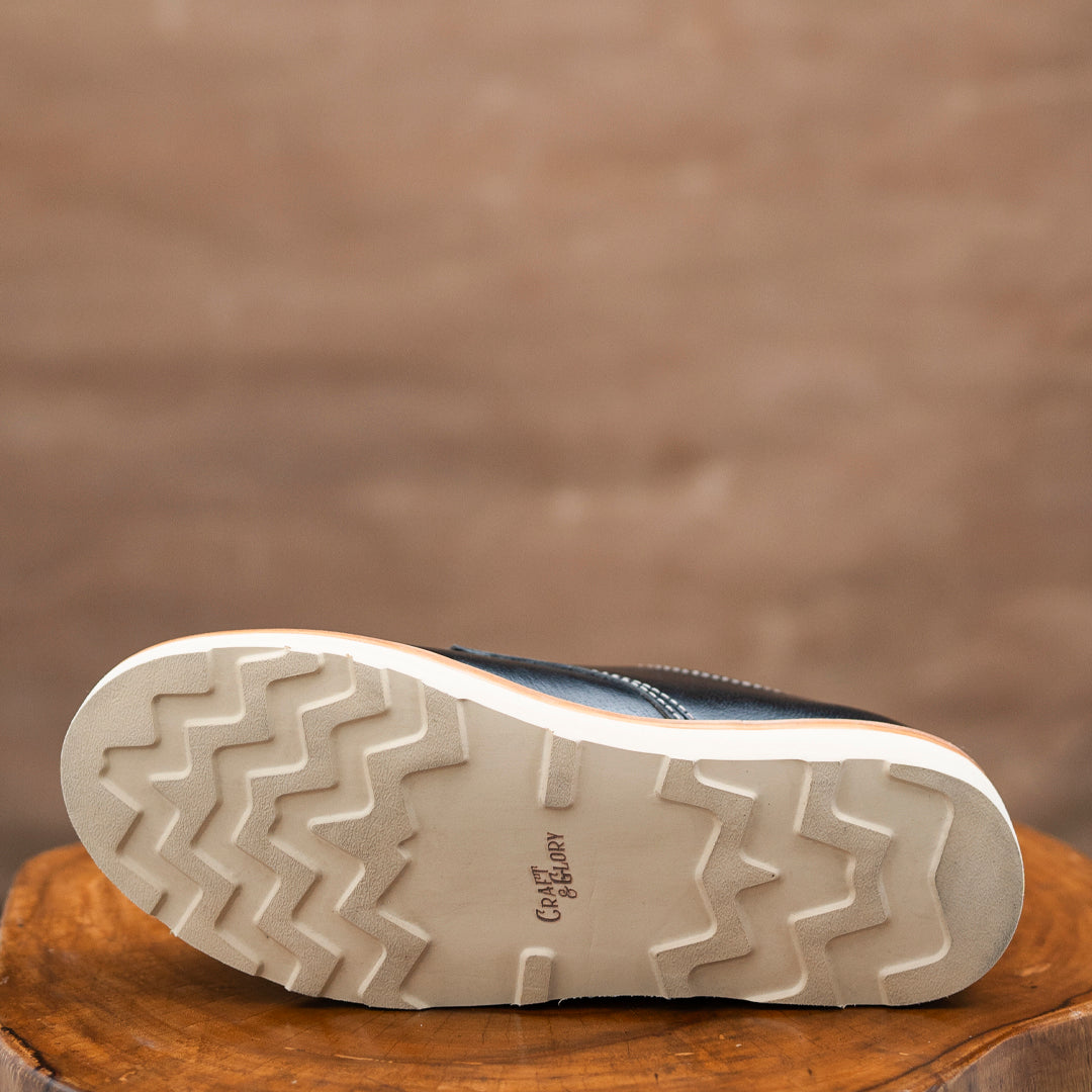 Toe box and heel counters are crafted out of thick vegetable tanned leather and dipped in industrial hardeners to keep your shoes structured and durable for a lifetime.