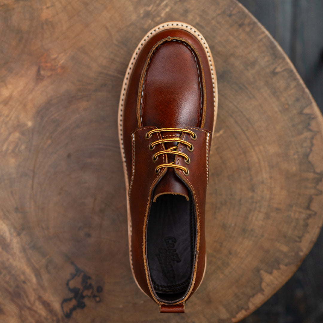 Toe box and heel counters are crafted out of thick vegetable tanned leather and dipped in industrial hardeners to keep your shoes structured and durable for a lifetime.