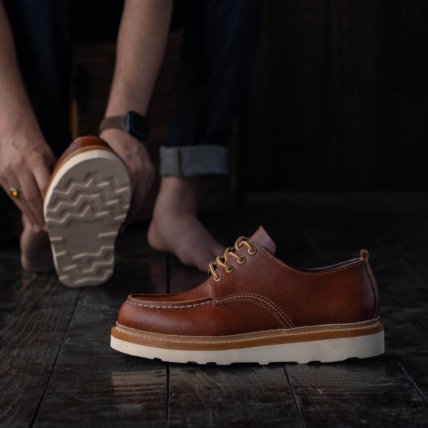 Crafted using super thick leather, and no unnecessary layers of materials these shoes are unlined, light and breathable. Making them suitable for all weather conditions and comfortable enough to wear all day long.