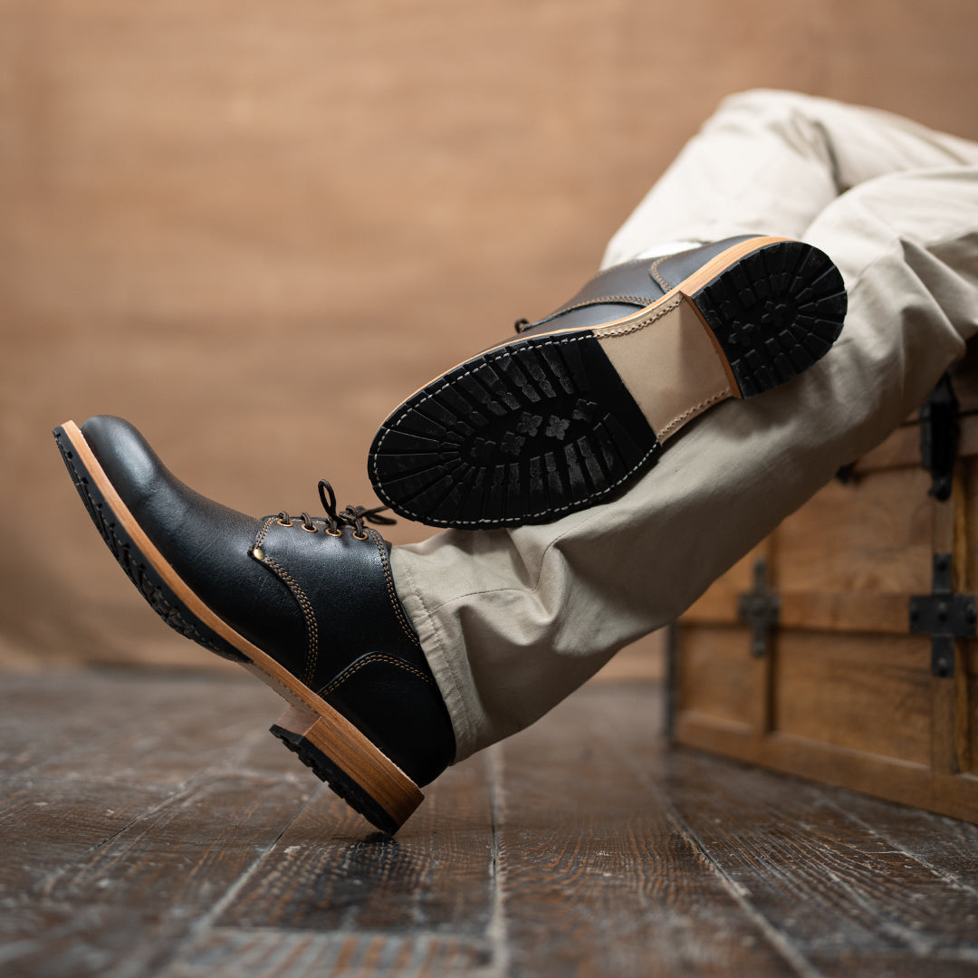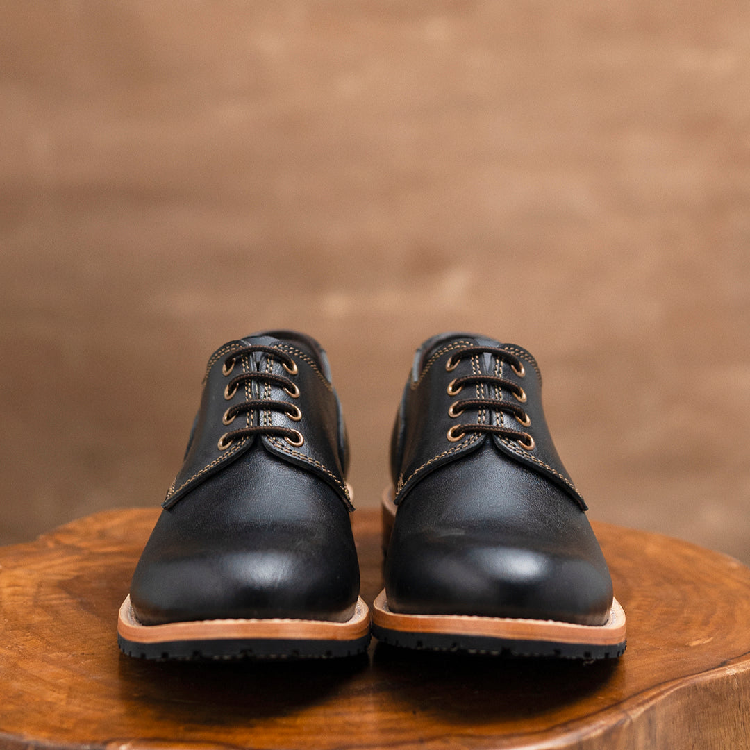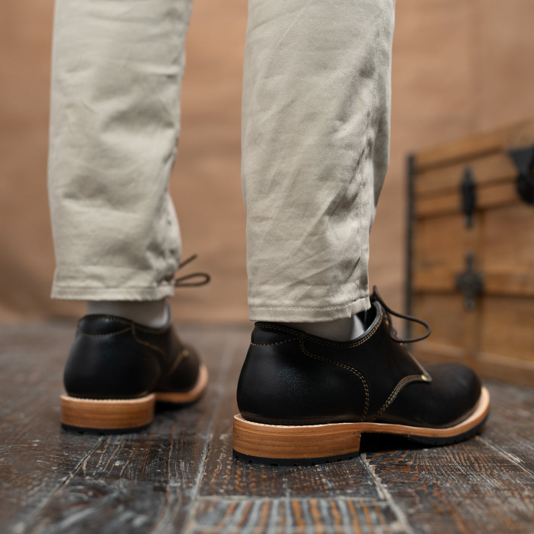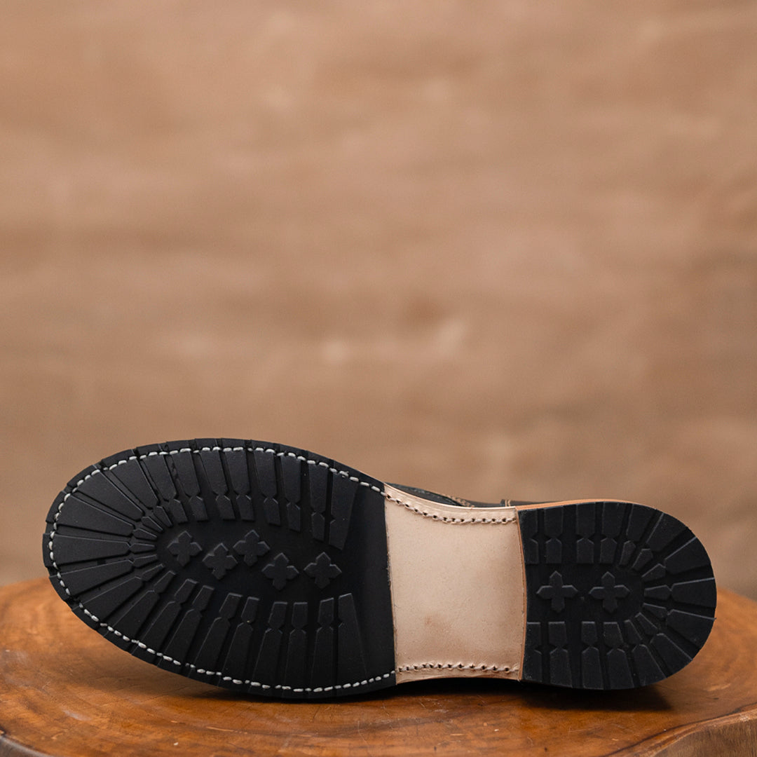 Crafted from premium full-grain leather, our Service Shoes offer a rich texture that ages beautifully over time. The Goodyear welt construction ensures durability and the ability to be resoled, making them a lifelong companion. We've reinforced both sides of the shoe with rivets, adding strength to high-stress areas while maintaining a sleek profile and historical accuracy.