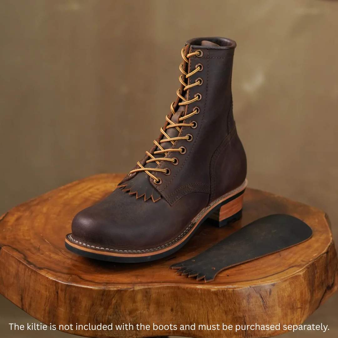 Key features include a logger heel for stability, a veg-tan midsole for enhanced durability, and a gusseted tongue for water and dust protection. The detachable kilti adds versatility to the design, and every pair is handstitched and hand-lasted, taking over 20 hours to craft—embodying true heritage craftsmanship.