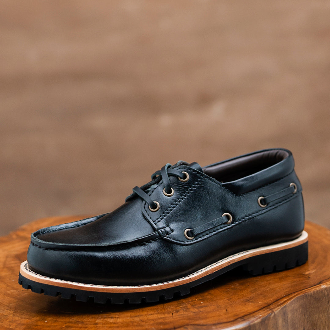 Evolving from practical yachtsmen's footwear to a staple for US Marines, and now a modern style essential, these Boat Shoes are perfect for all seasons. Pair with rolled-up chinos and a white shirt for a classic look, or jeans and a linen shirt for a rugged style. Step confidently into any adventure with their relaxed look and premium comfort.