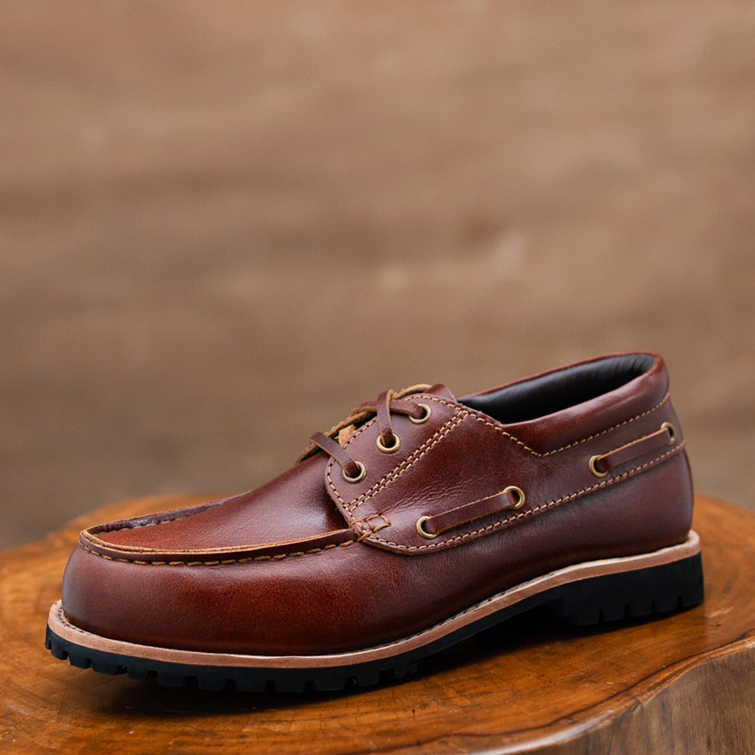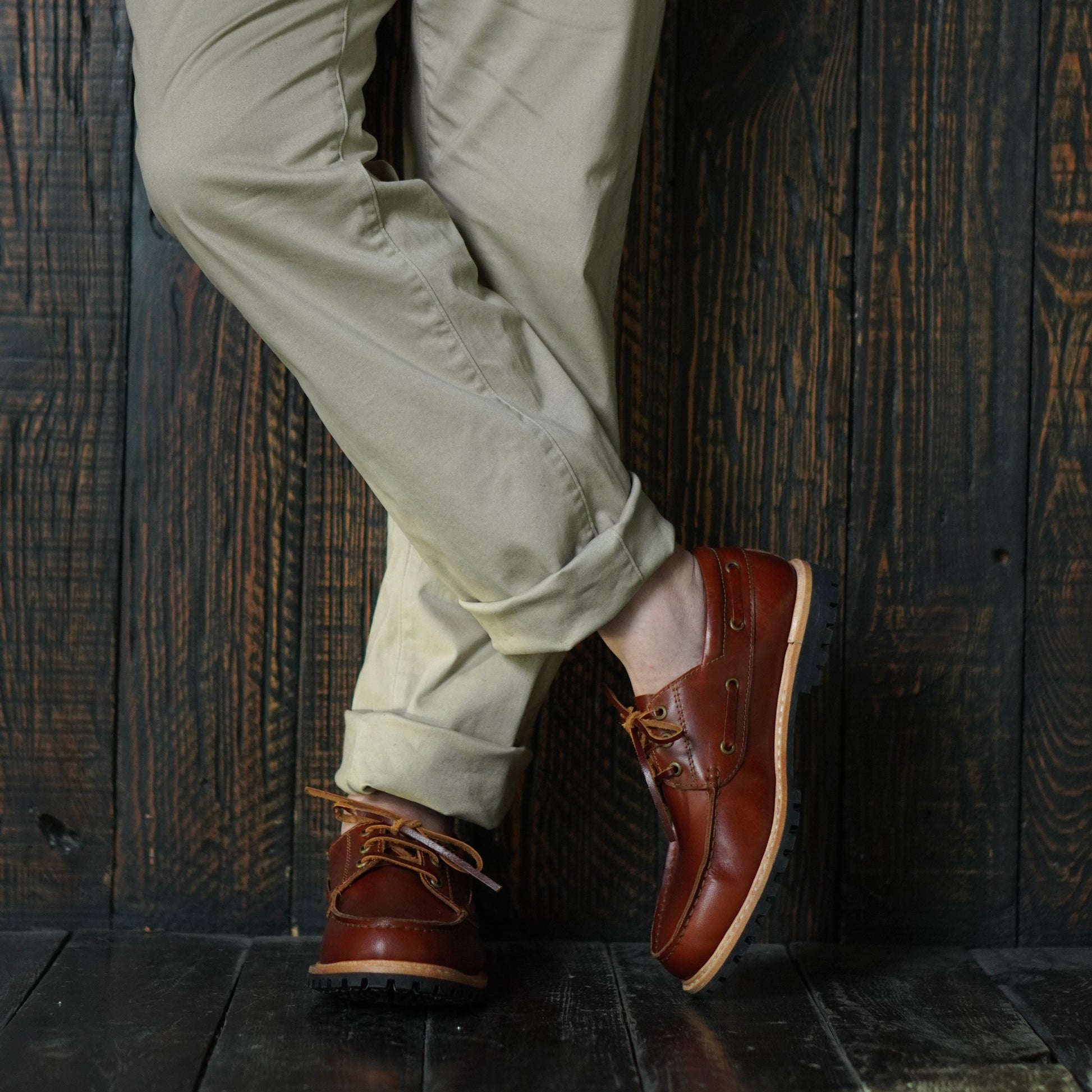 Evolving from practical yachtsmen's footwear to a staple for US Marines, and now a modern style essential, these Boat Shoes are perfect for all seasons. Pair with rolled-up chinos and a white shirt for a classic look, or jeans and a linen shirt for a rugged style. Step confidently into any adventure with their relaxed look and premium comfort.
