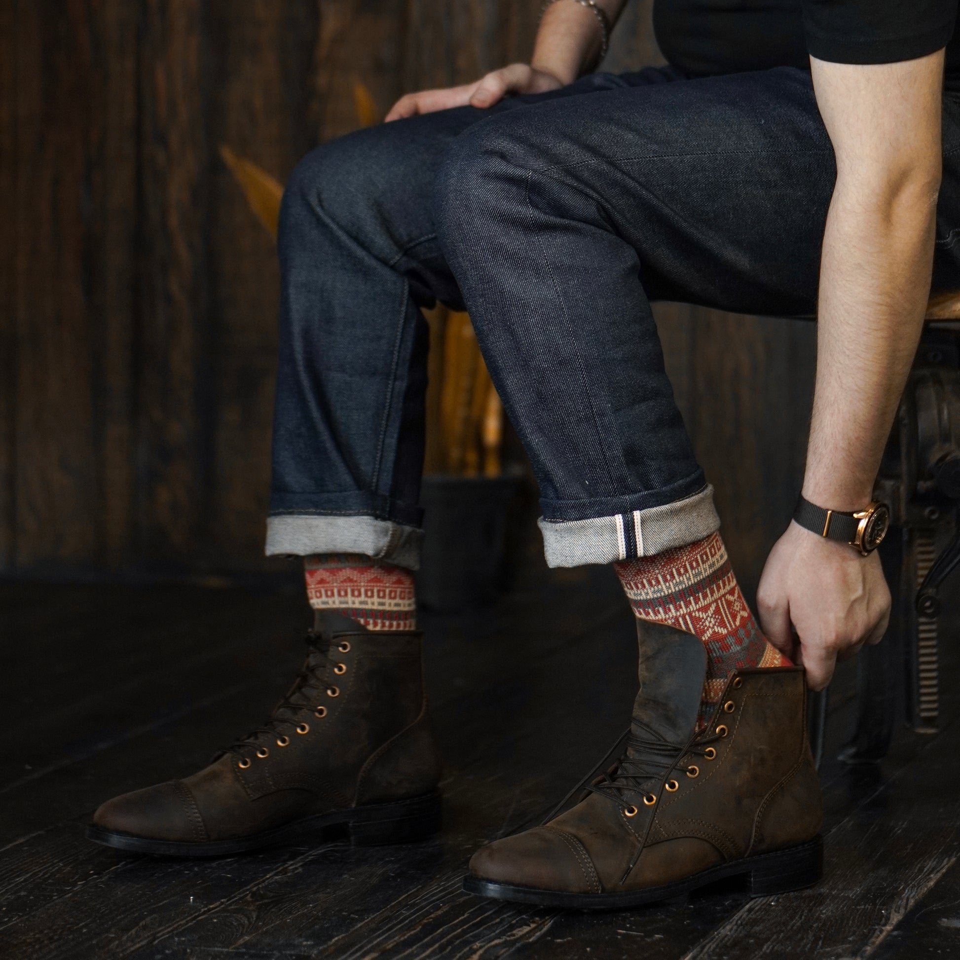 These Heritage Goodyear welted work Boots with Classic Toe Cap panel stitching and hand-stitched Commando Rubber outsoles, perfect for a rugged loving gentleman.