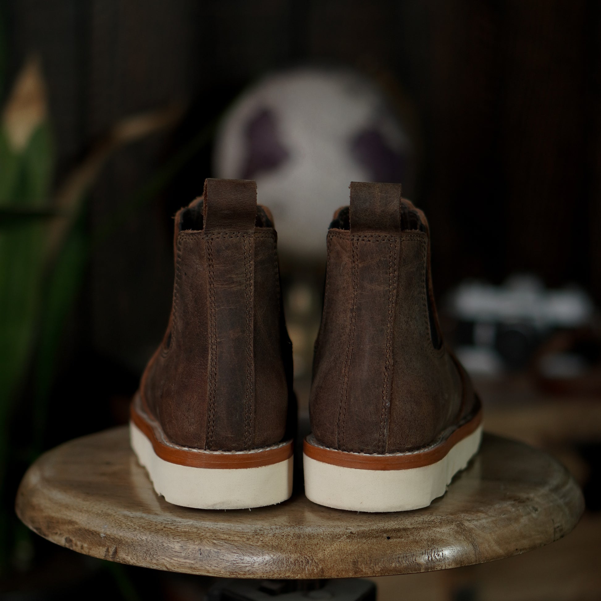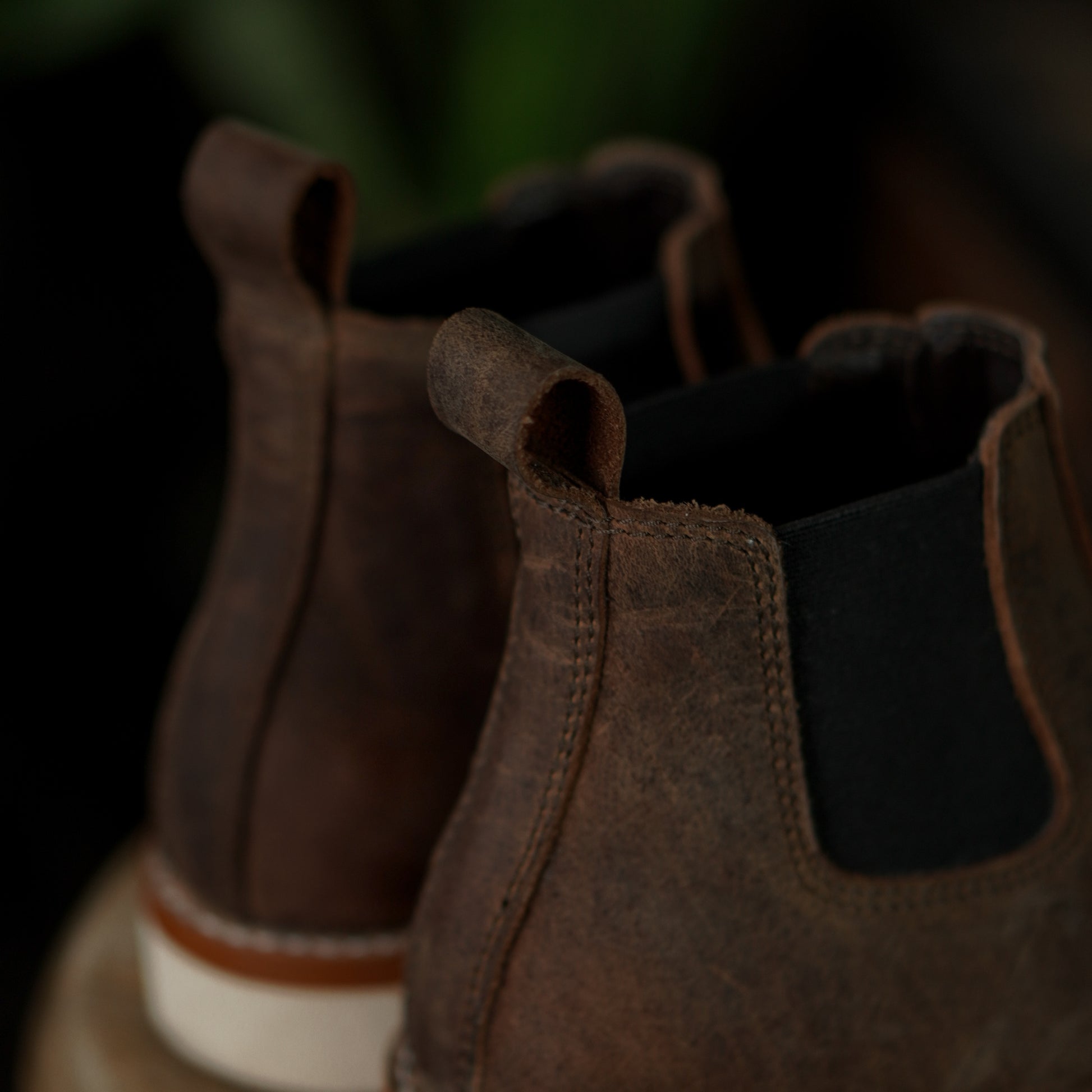 A pair of boots that would last you for years to come. Crafted out of full grain thick buffalo leather, hand stitched Goodyear welt. A boot sturdy enough to beat any terrain.