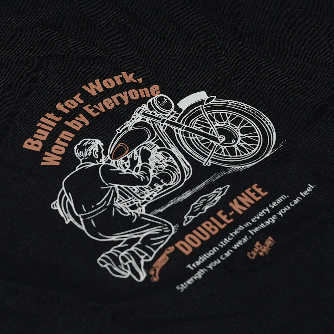 Engineered for endurance, the Double Knee embodies utility at its core. Reinforced panels at the knees and clean construction pay tribute to garments built for demanding work and lasting wear.