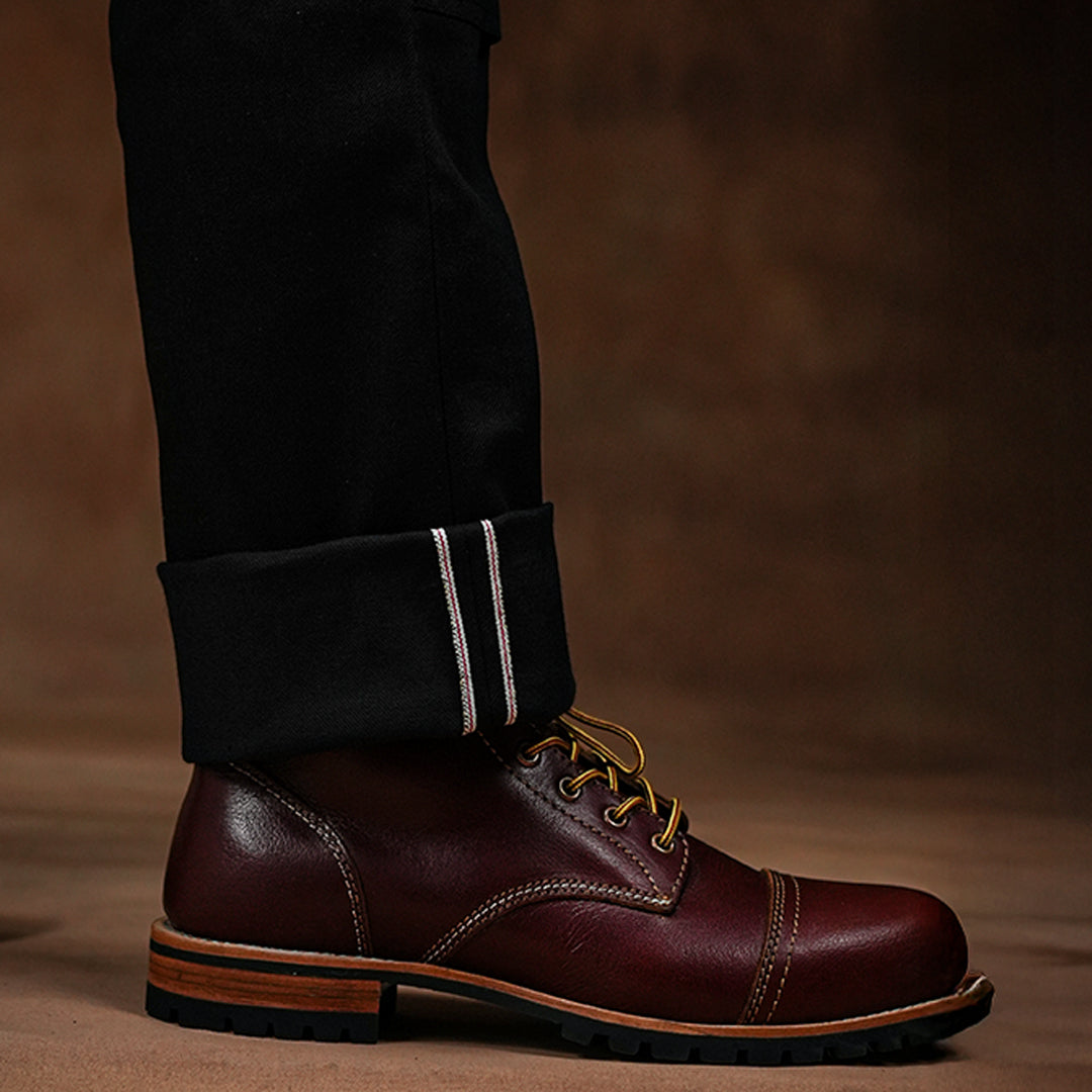 Character & Feel: Deep, uniform tone with a structured feel that relaxes with wear.