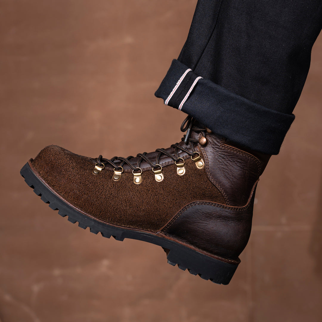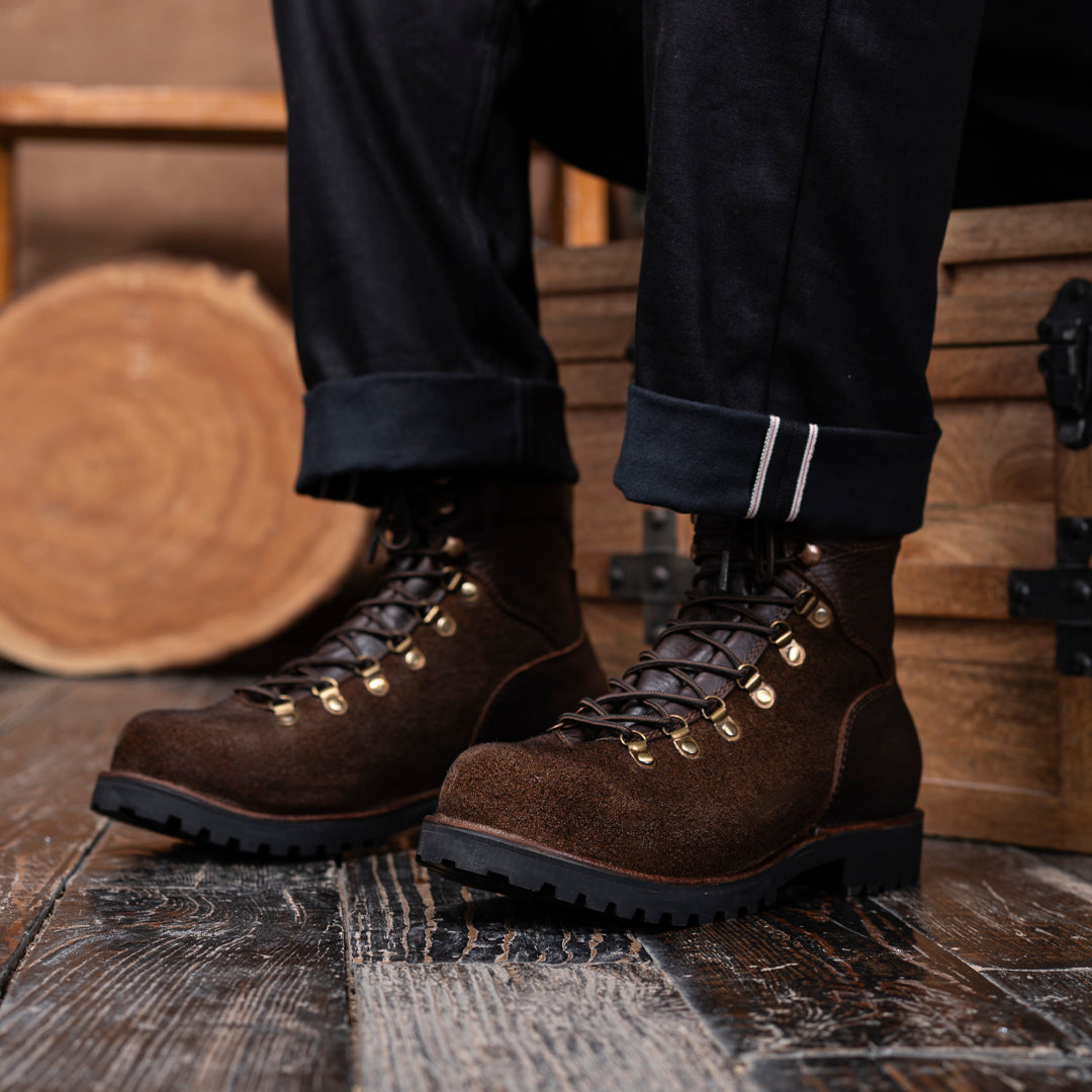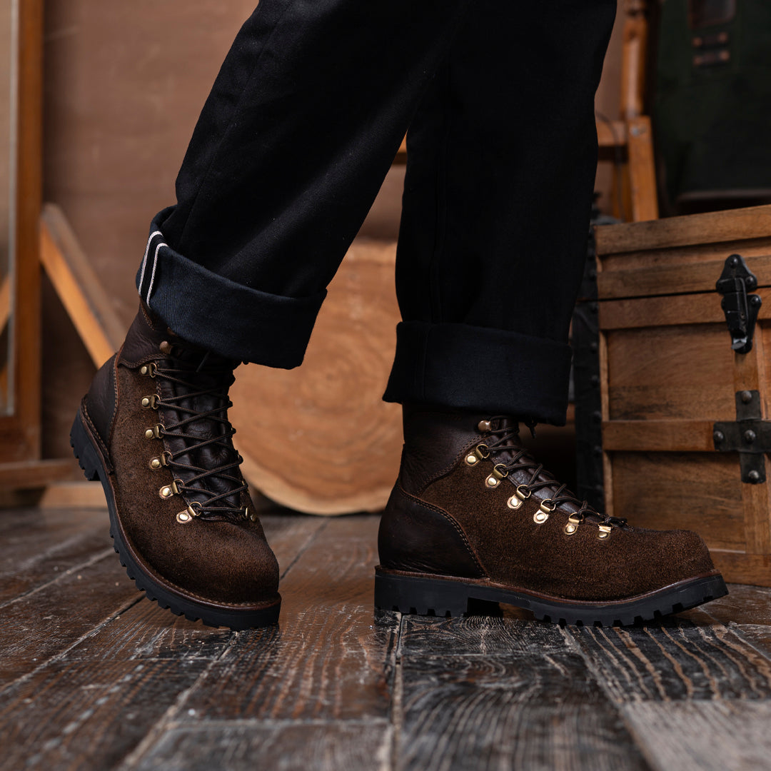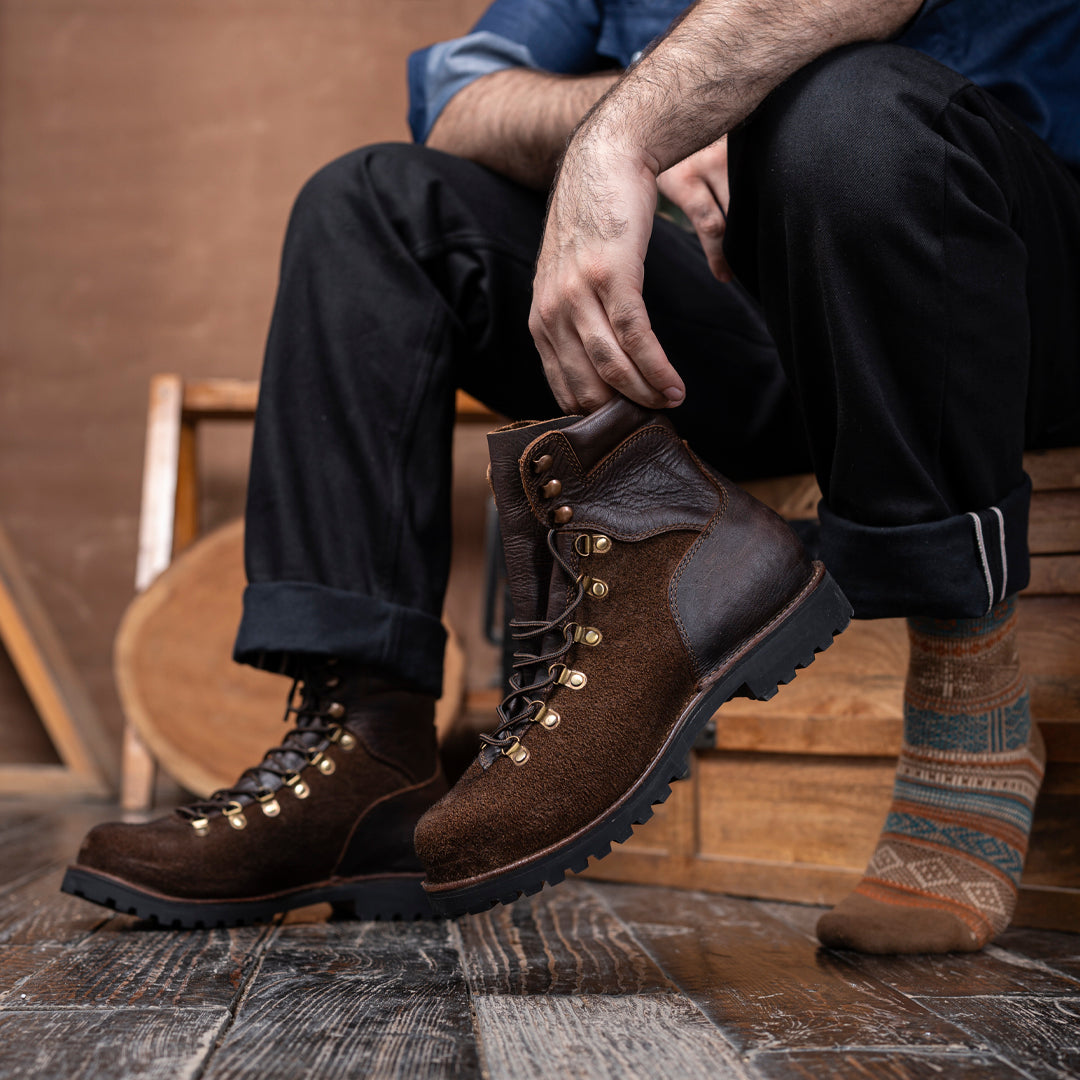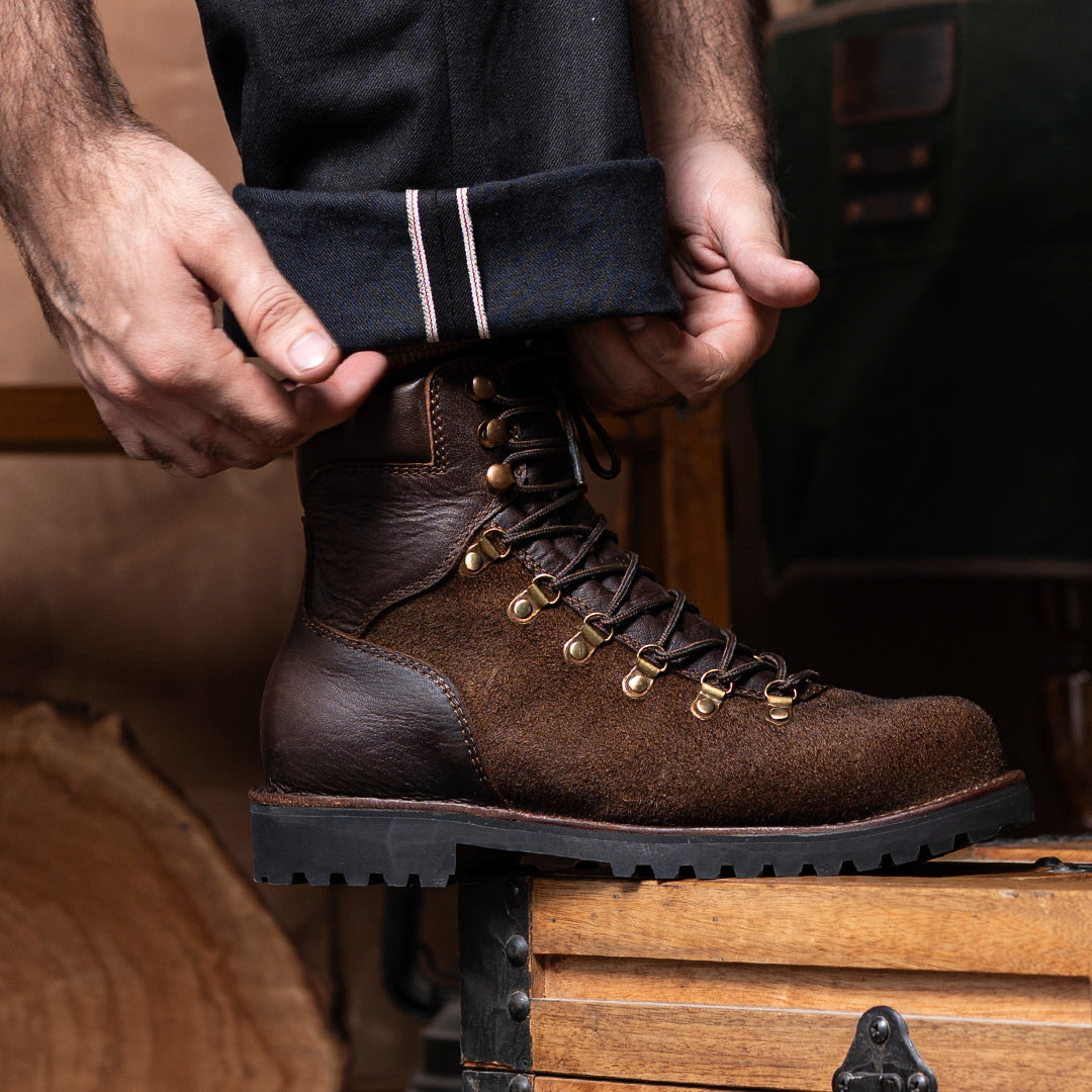 Deep, earthy, and full of character, the Grizzly Brown Himalayan Hiker brings mountain function with serious vintage attitude. The upper uses both rough-out and grain sides of our Stormshield44 full-grain buffalo leather, making it as tough as the trails it's meant for. The dual-finish leather handles abrasion, scuffs, and grit like a badge of honor.