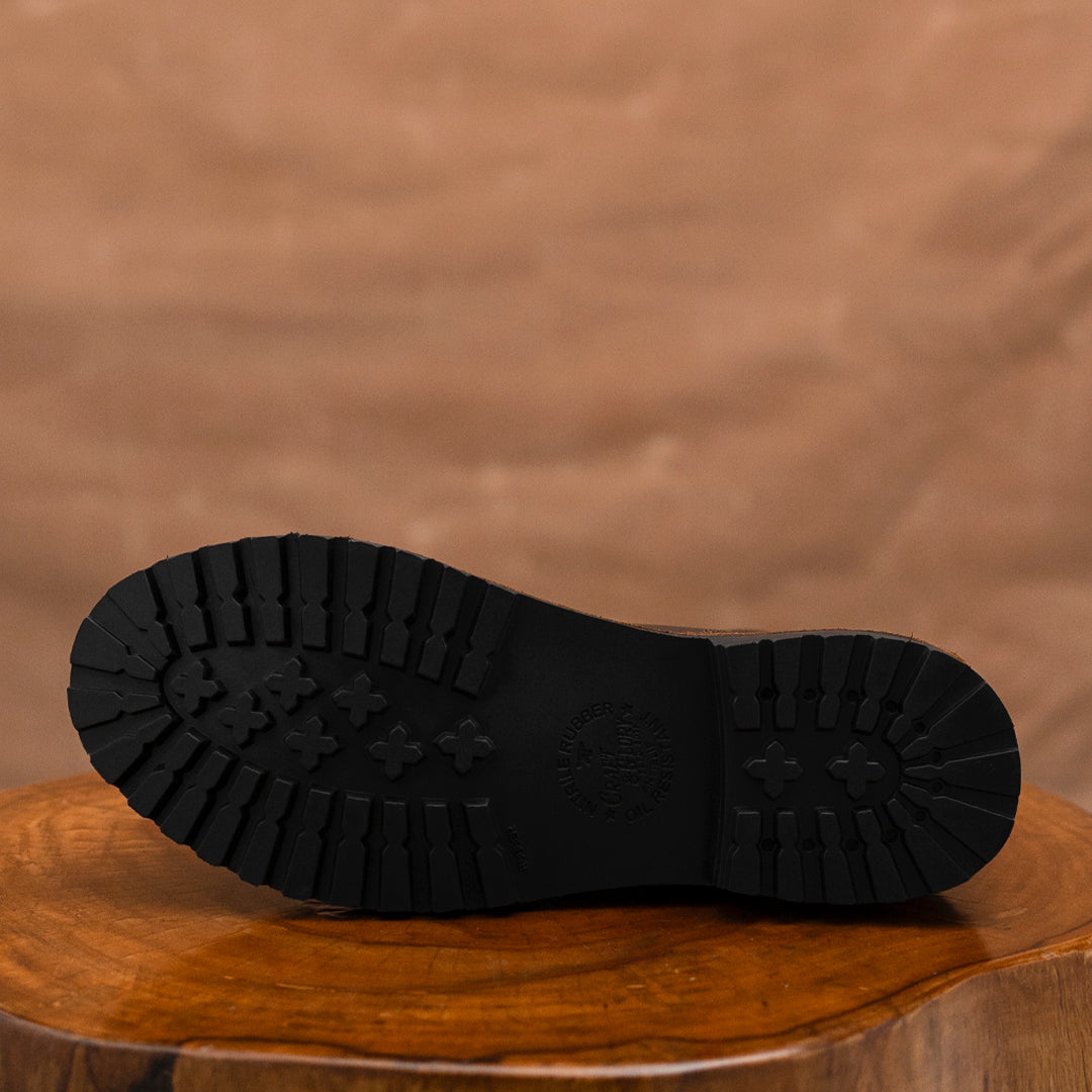 Our welt, Insole & Heel stacks are all crafted out of thick vegetable tanned buffalo leather ensuring the highest quality. We use natural cork footbed, iron and brass nails. All these materials are top notch, super durable & natural ensuring a long lasting boot for years to come.
