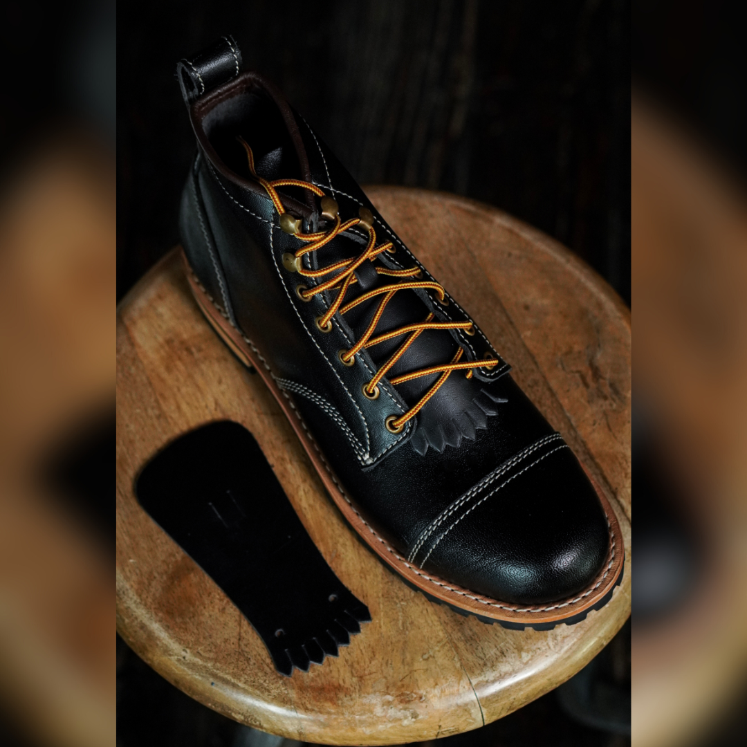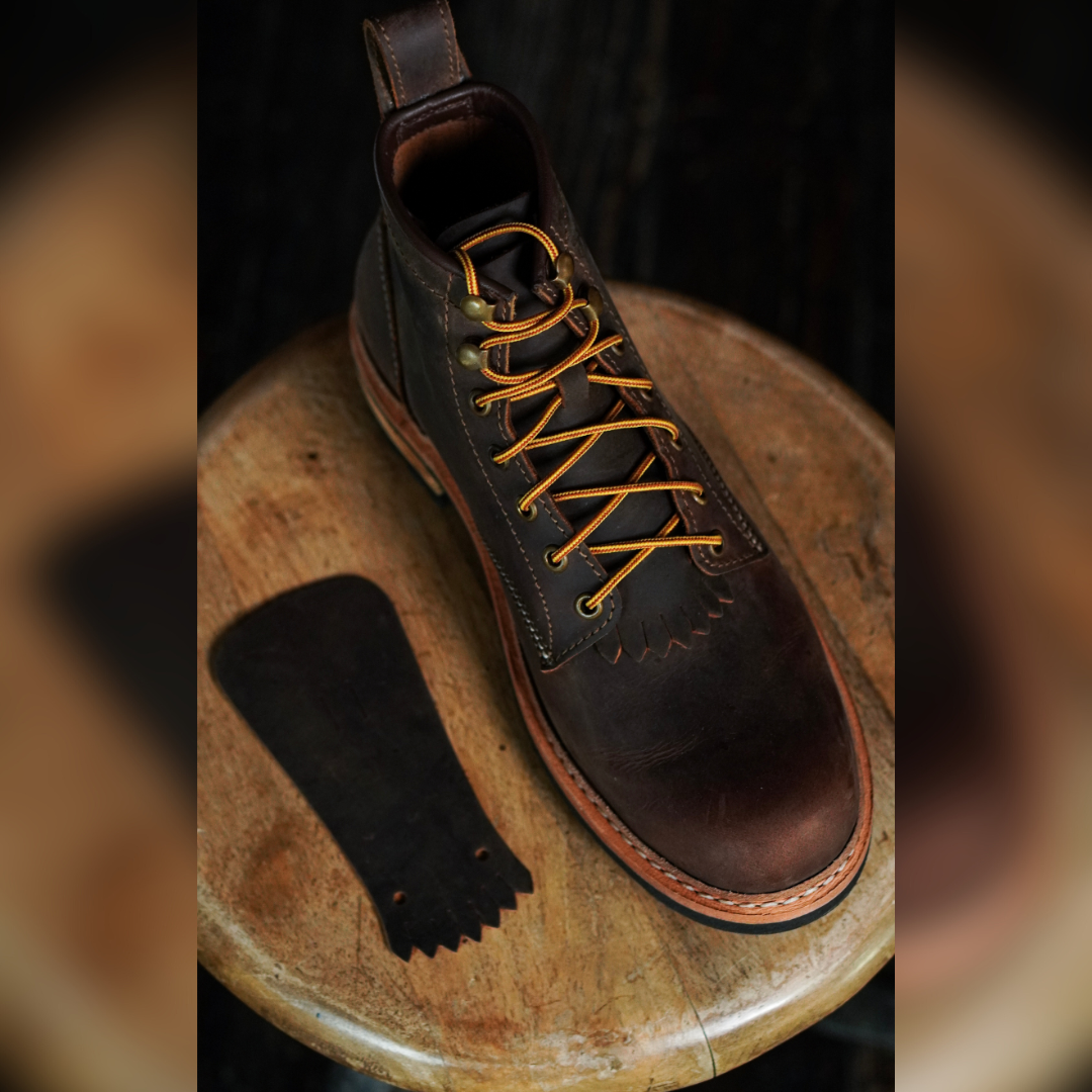 I chose the Vintage brown Kiltie to go with my Saddle tan boots to create a subtle contrast in color and texture. It give more traditional workwear personality to the boots. It also adds to the functionality by protecting the tongue from scratches especially from the speed hook bottoms.