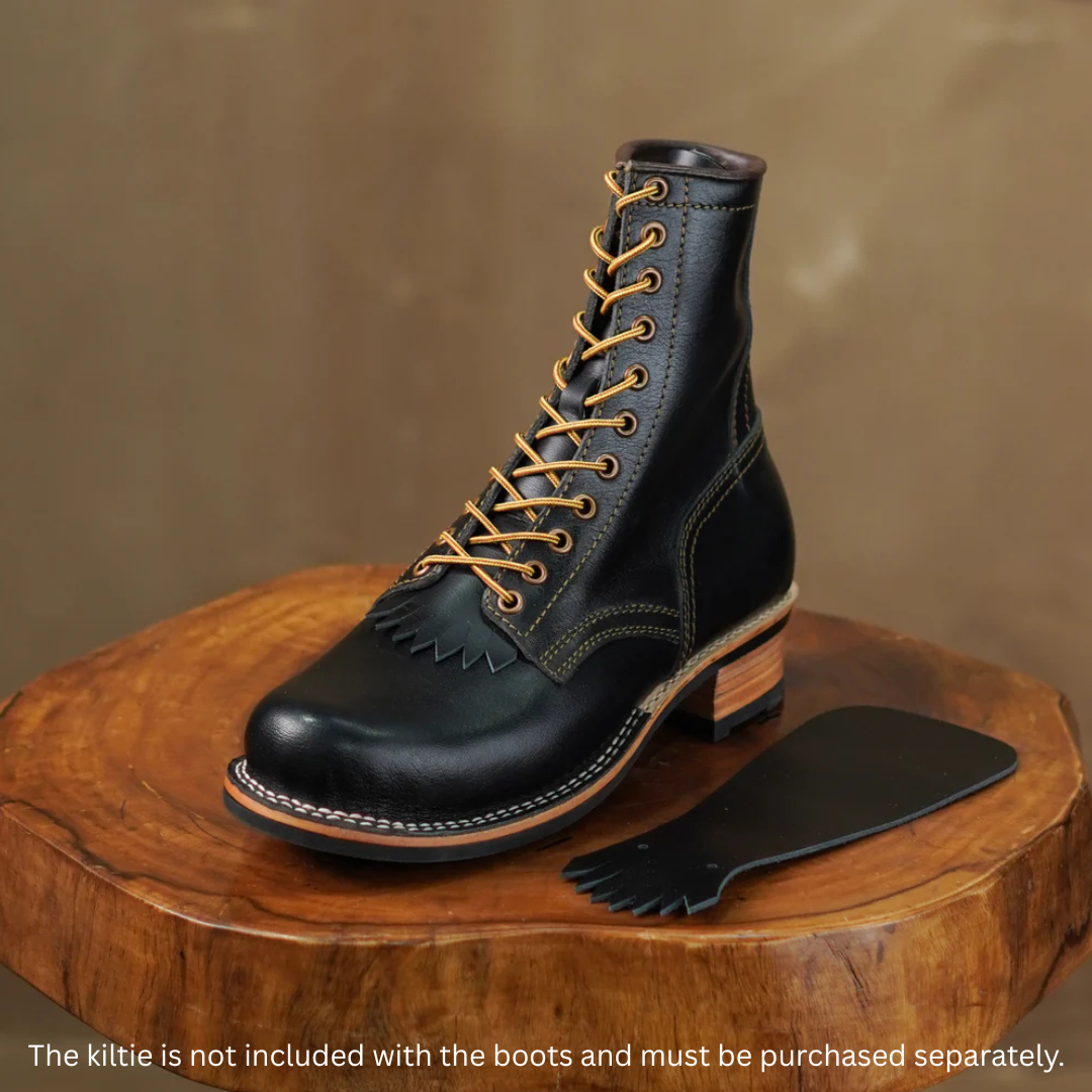 Key features include a logger heel for stability, a veg-tan midsole for enhanced durability, and a gusseted tongue for water and dust protection. The detachable kilti adds versatility to the design, and every pair is handstitched and hand-lasted, taking over 20 hours to craft—embodying true heritage craftsmanship.