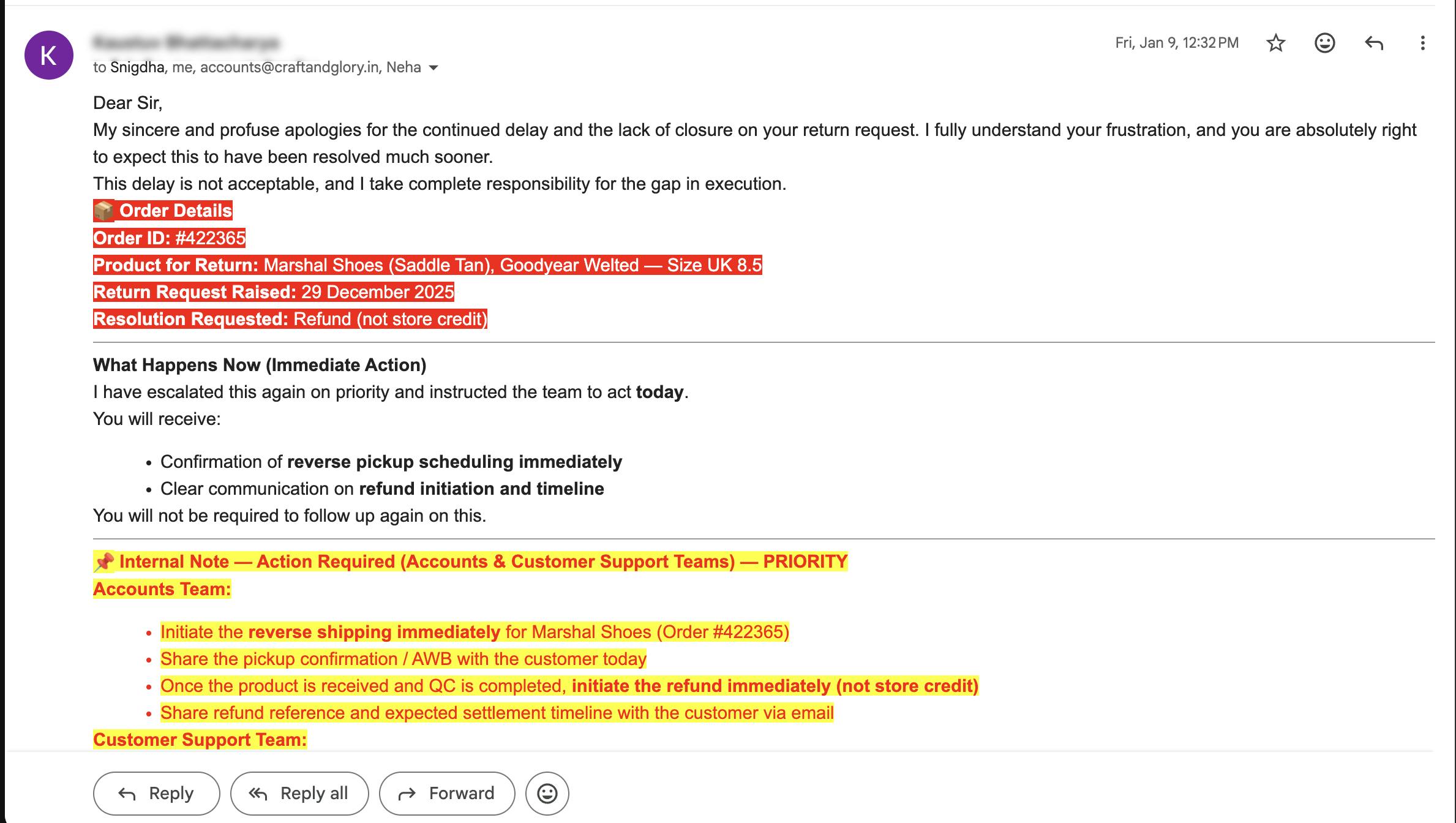 They even tried charging a ridiculous ₹600 just to ship the return, so I sent the shoes back myself on 13 January 2026. It’s now over three weeks since the refund was requested and more than 10 days since they received the shoes, no refund, no acknowledgement, no timeline.