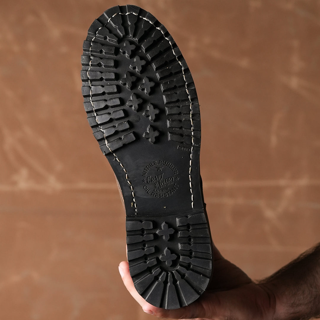 A pair of boots that would last you for years to come. Crafted out of full grain thick buffalo leather, hand stitched Goodyear welting. A boot sturdy enough to beat any terrain.