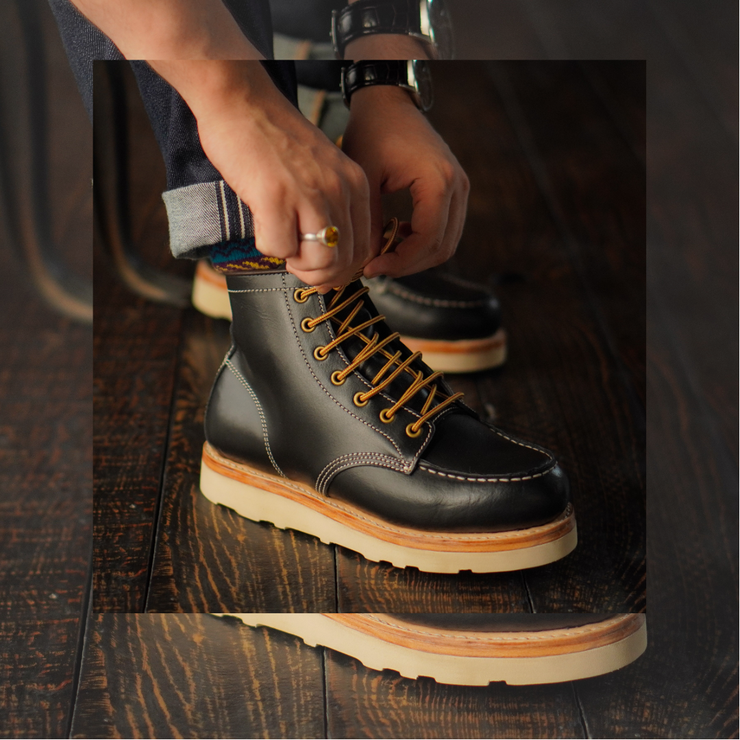 Moc-Toe Leather Boots 6" (Raven Black) Goodyear Welted