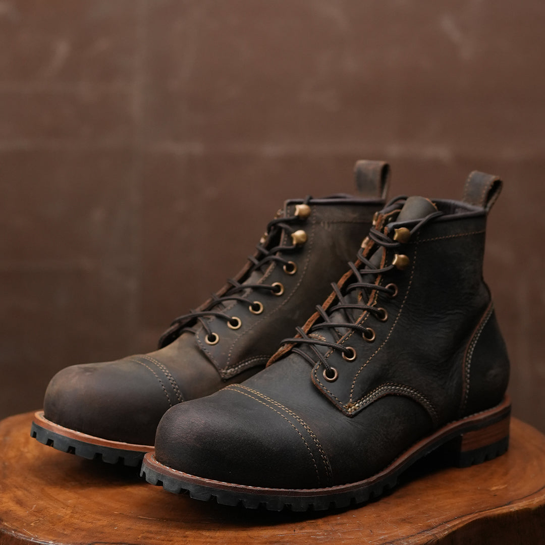 Inspired from work boots developed for mine and industrial workers in early 1900s later adopted by Military and Navy as service boots in world war I & II. Toe Cap boots have stood the test of time both in terms of durability and functionality.