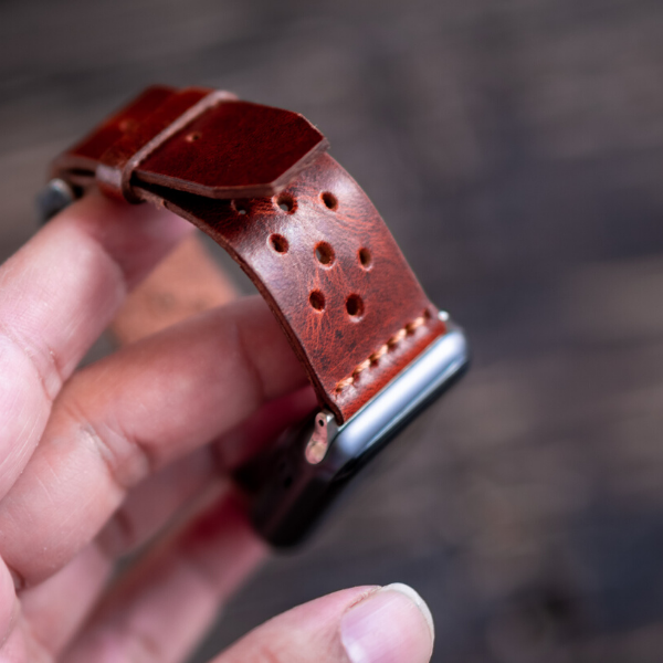 A beautiful and minimal band that looks better as it ages and gains patina. Hand cut, punched and stitched using the finest quality 5 0z (2mm) thick full grain waxed buffalo leather sourced from LWG gold certified tannery. Your Apple watch deserves a band that both looks and feels great.