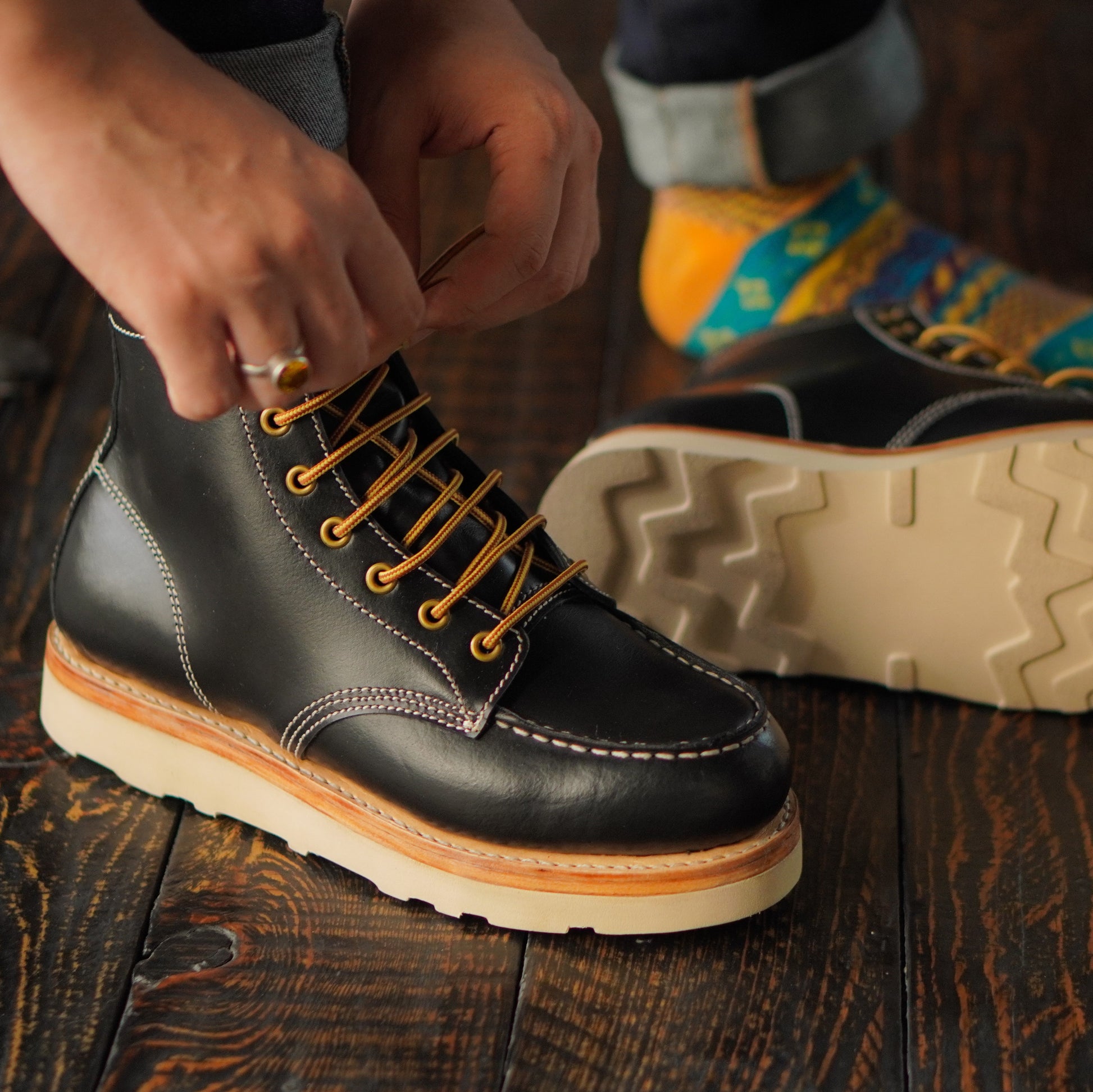 Moc-Toe Leather Boots 6" (Raven Black) Goodyear Welted