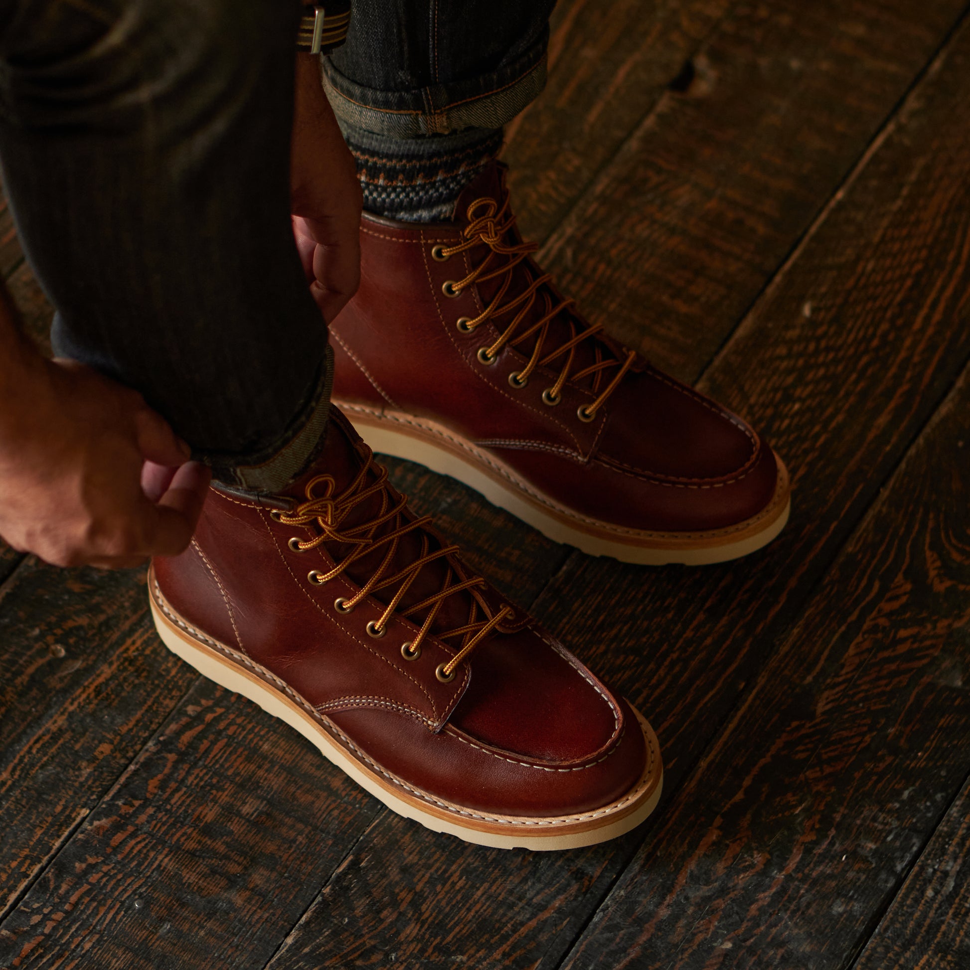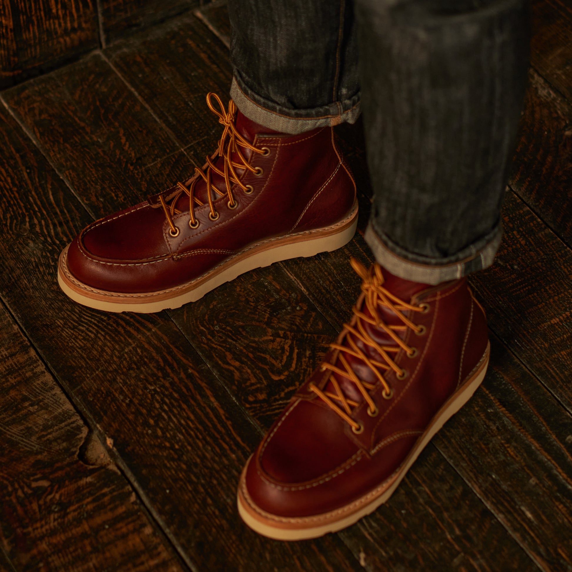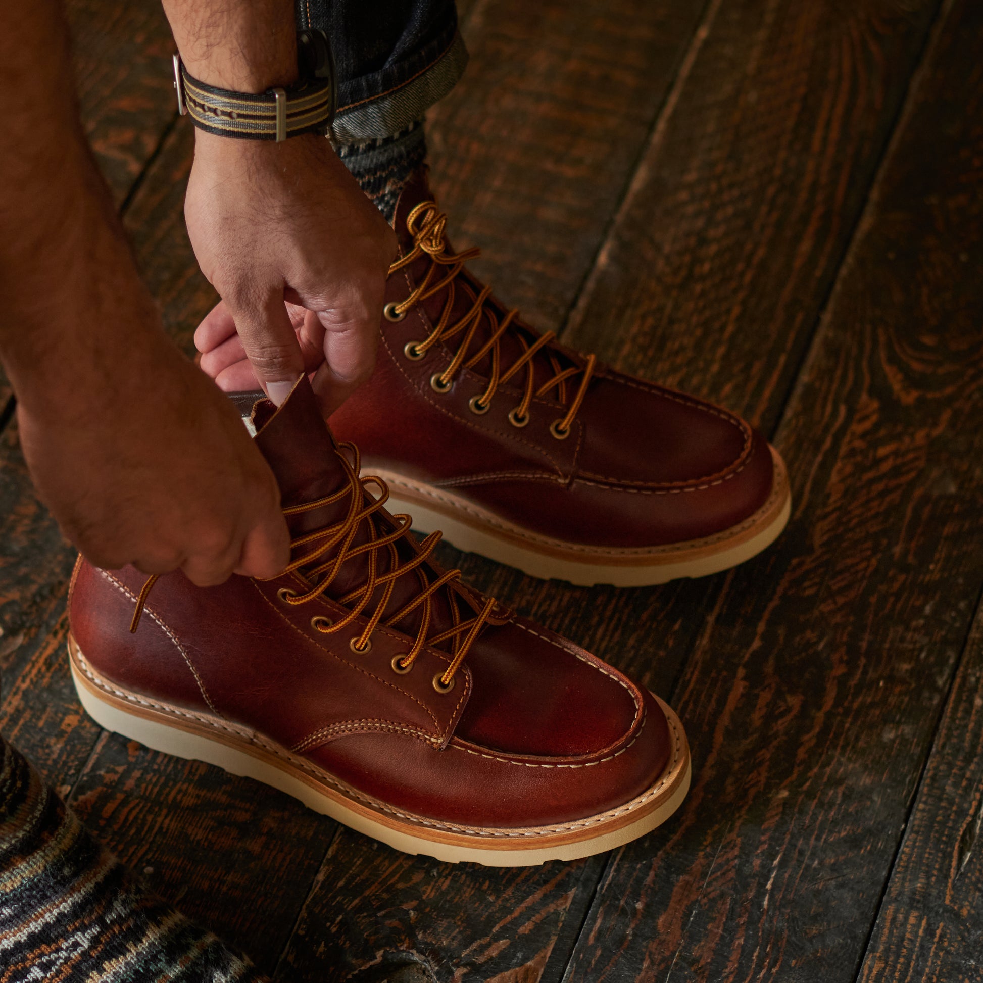Toe box and heel counters are crafted out of thick vegetable tanned leather and dipped in industrial hardeners to keep your boot structured and durable for a lifetime.