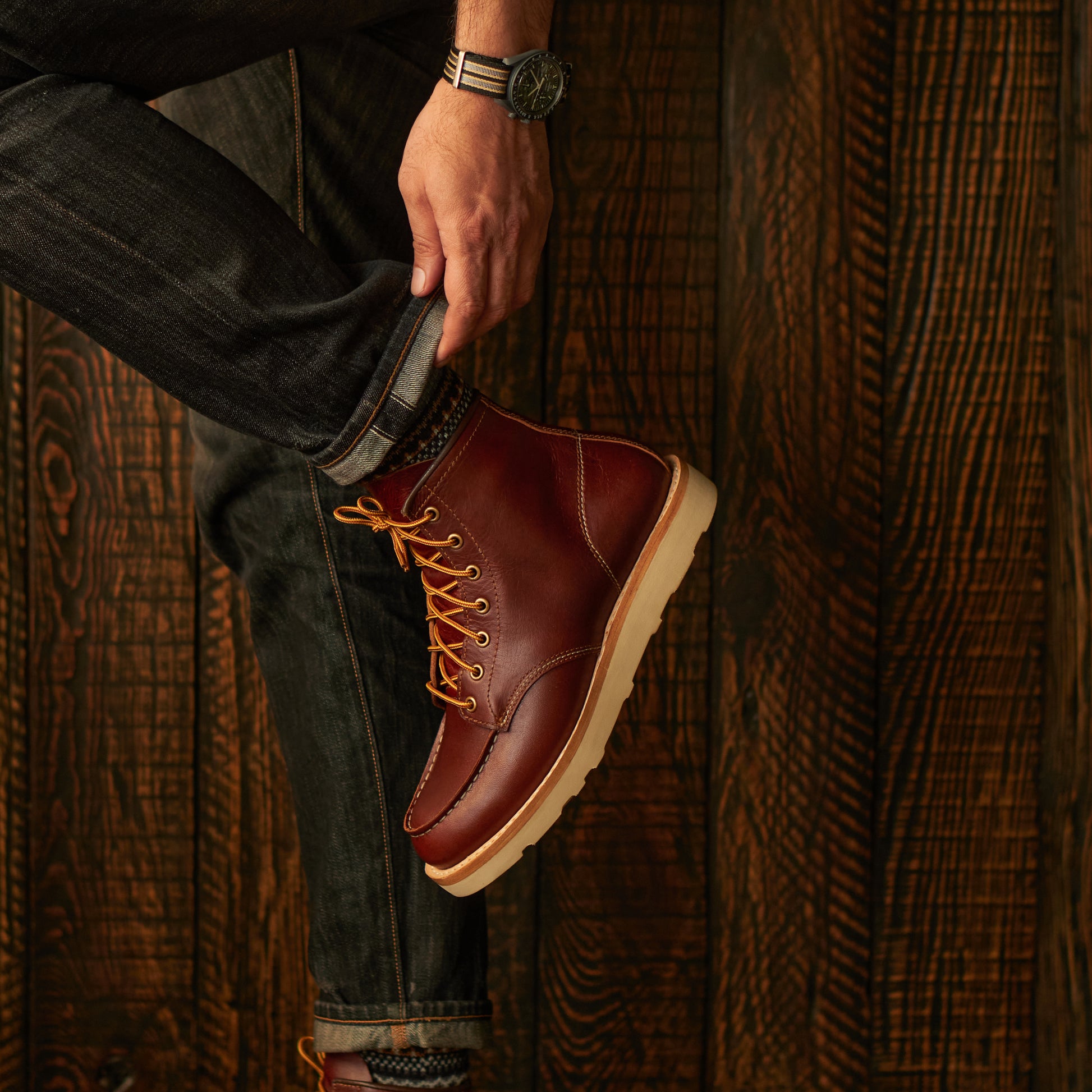 These Heritage Style Goodyear welted Handmade Boots with Classic Moc stitching and Traction Tred outsole are perfect for a rugged loving gentleman.