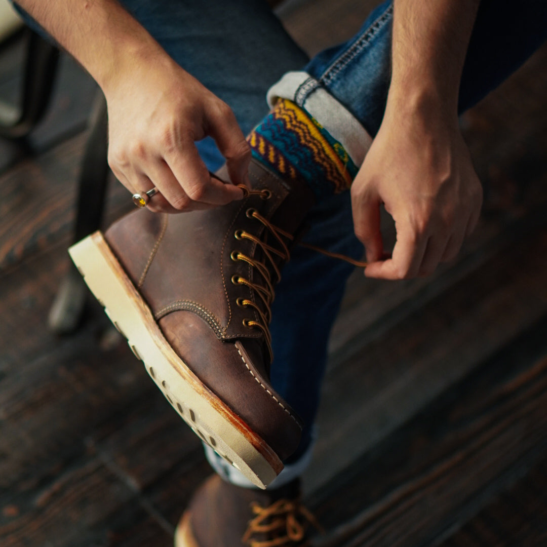 Moc-Toe Leather Boots 6" (Vintage Brown) Goodyear Welted