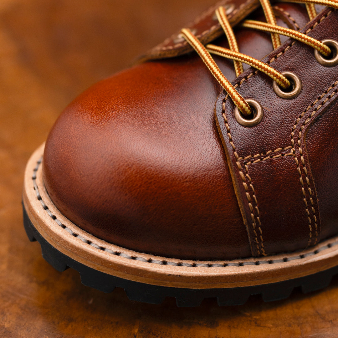 - 5 0z (2mm) thick waxed buffalo leather upper.
