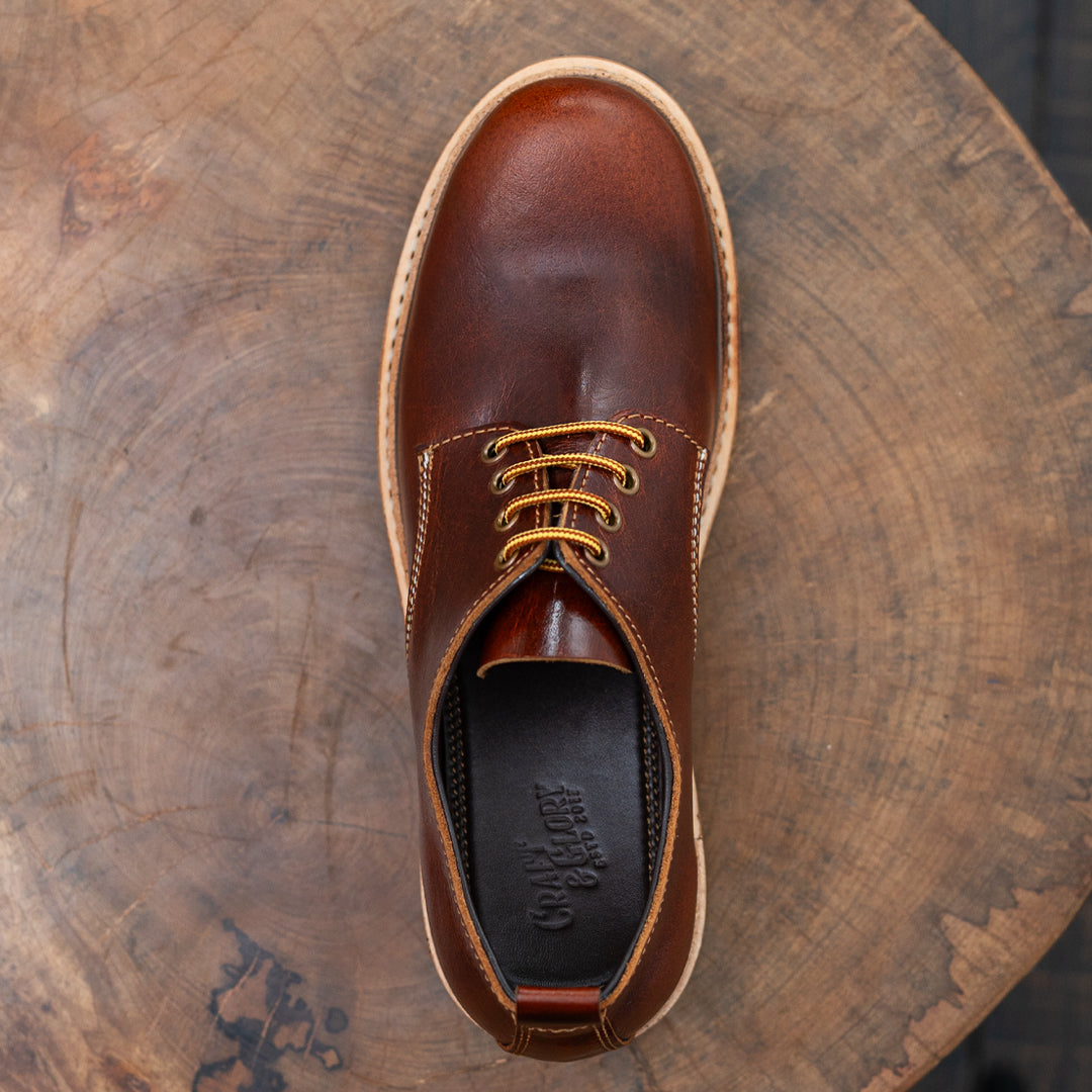 Toe box and heel counters are crafted out of thick vegetable tanned leather and dipped in industrial hardeners to keep your shoes structured and durable for a lifetime.