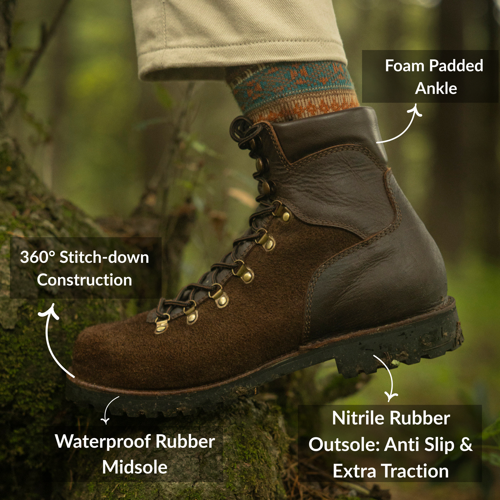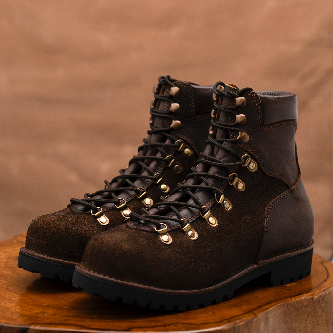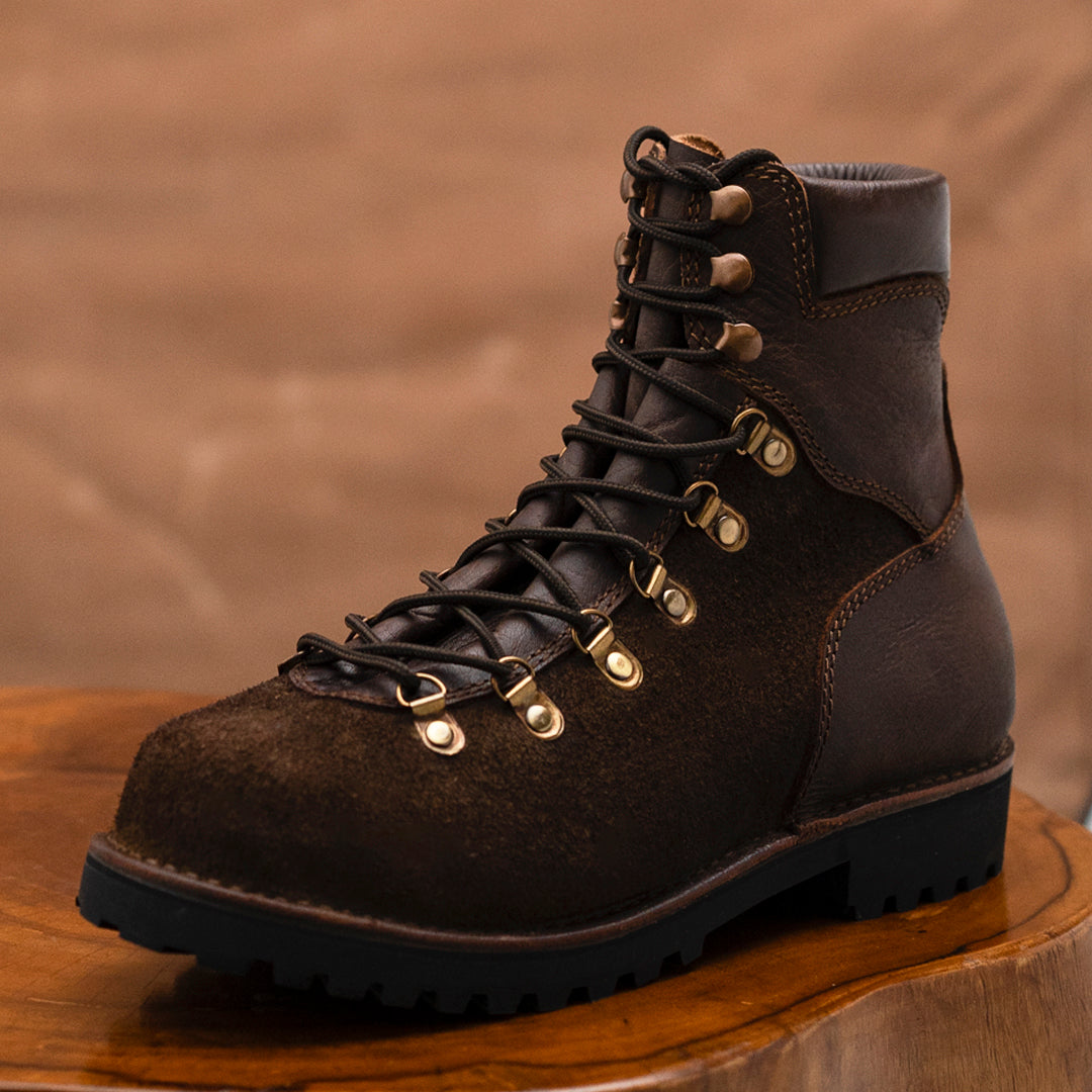 Deep, earthy, and full of character, the Grizzly Brown Himalayan Hiker brings mountain function with serious vintage attitude. The upper uses both rough-out and grain sides of our Stormshield44 full-grain buffalo leather, making it as tough as the trails it's meant for. The dual-finish leather handles abrasion, scuffs, and grit like a badge of honor.