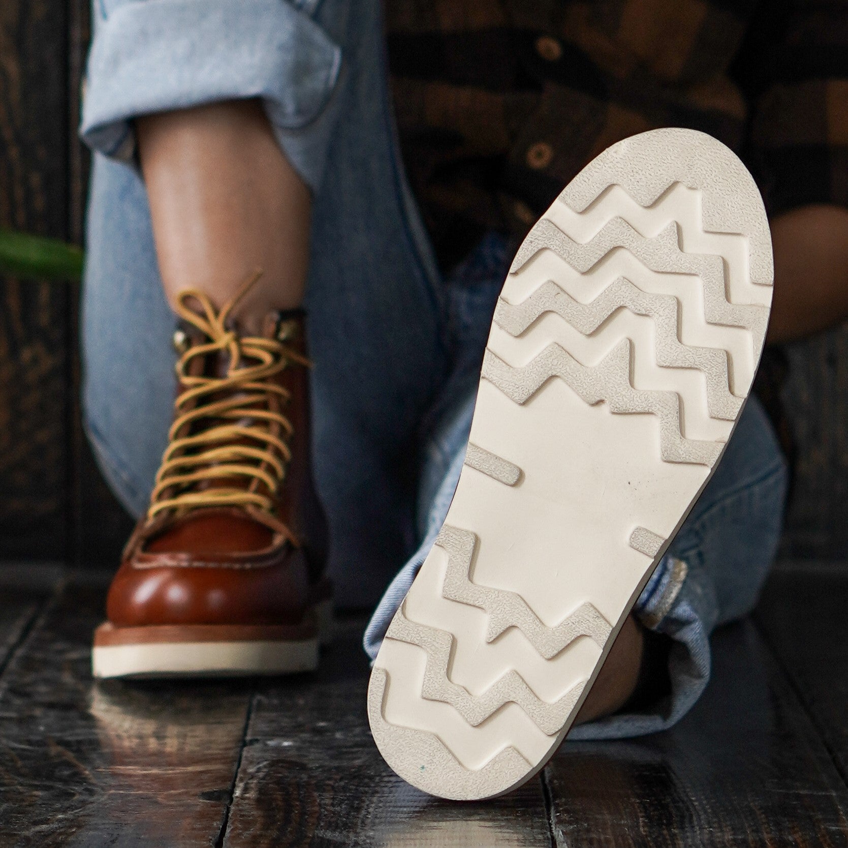 These Heritage Style Goodyear welted Handmade Boots with Classic Moc stitching and Traction Tred outsole are perfect for rugged-loving women.